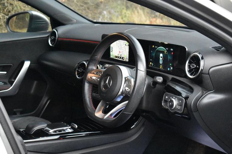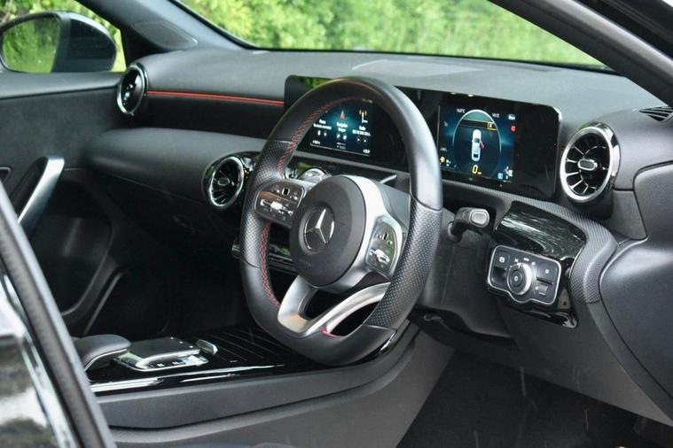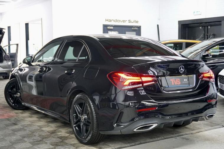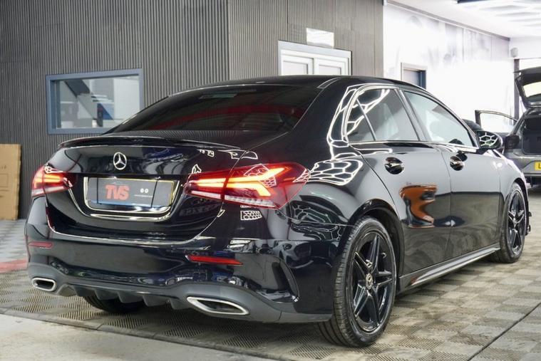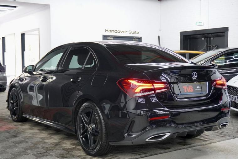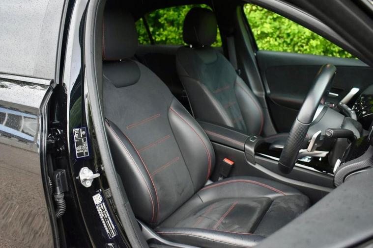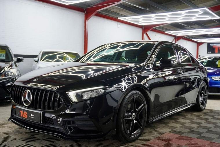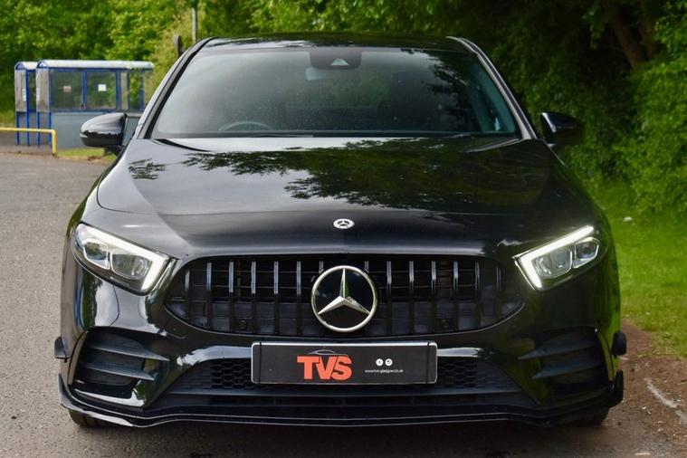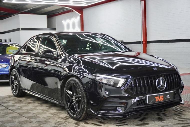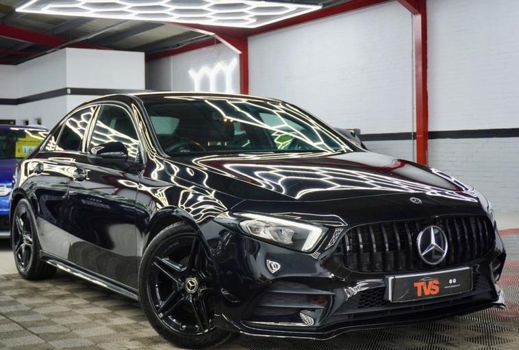 2019 Mercedes Benz A200 AMG Line 7G-DCT 4 door saloon - Automatic - Cosmos Black with half leather & half alcantara interior - only 30k miles from new - 2 former keepers - 2 remote keys - Mercedes Benz main dealer & independent garage service history - just serviced for sale by independent German car specialists with Mercedes DSR updated - fresh 12 months MOT with no advisories - Platinum warranty - full 12 months AA roadside assistance also included! Gloss black AMG wheels! GT Grill! A45 AMG Aero Pack! Night Pack!