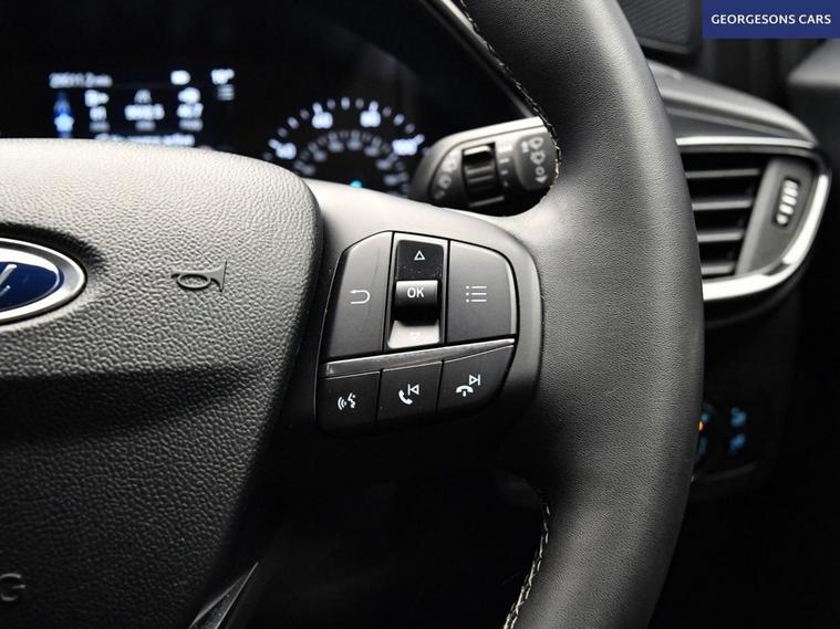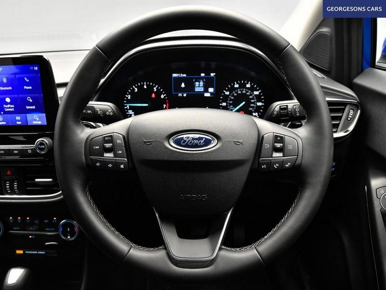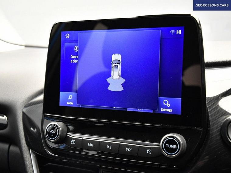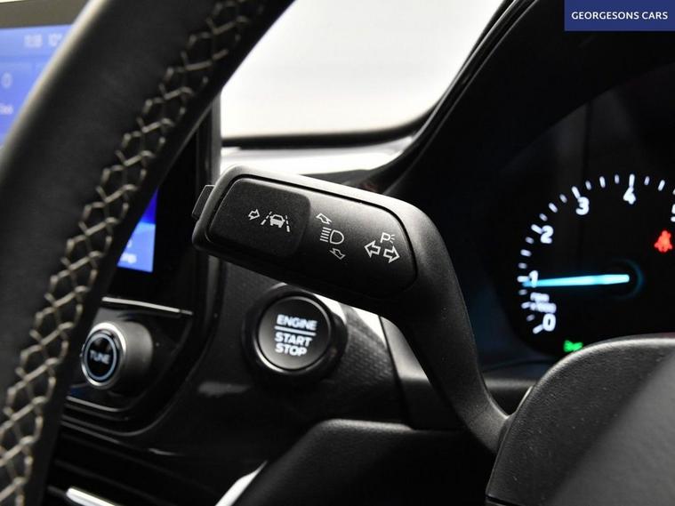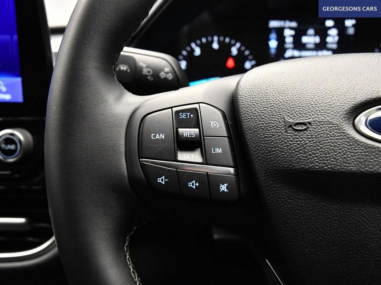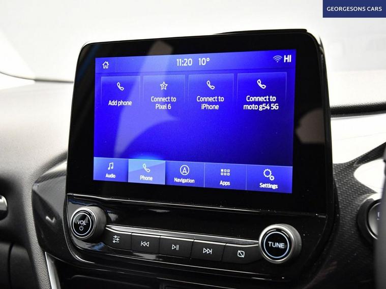 The Ford Puma 1.0T EcoBoost MHEV Titanium combines a responsive 1.0-litre mild-hybrid turbo petrol engine with 125hp, delivering 0-62mph in 9.8 seconds and up to 52.3mpg in this front-wheel-drive setup with a smooth 7-speed DCT automatic transmission. The Titanium trim offers premium comfort with 17-inch alloys and a high-grade interior. With one owner, this Puma is in excellent condition. Navigate effortlessly with Apple CarPlay, Bluetooth, DAB radio and integrated satellite navigation. Parking is a breeze thanks to the parking sensors. Stay comfortable with climate control. Cruise control with speed limiter and lane assist enhance safety and relaxation on every journey. The stylish five-door SUV includes a clever 456-litre MegaBox boot for practicality.