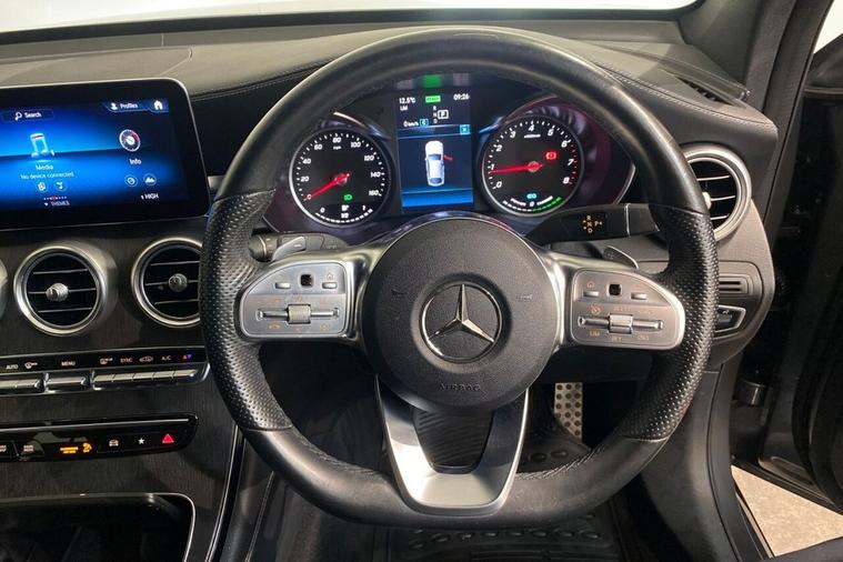 Boasting exceptionally low mileage for its age, this 2020 Mercedes Benz GLC300h AMG Line presents a superb ownership proposition. This four wheel drive, Euro 6 compliant model features a 2.0 litre petrol hybrid engine, offering a blend of efficiency and performance. With a full service history and a clear vehicle history check, its provenance is assured, and the MOT remains valid until January 2027. Notable features include Headlamp Assist for automatic light activation, heated front seats for enhanced comfort, and LED High Performance headlamps with integrated daytime running lights. The THERMOTRONIC 3 zone automatic climate control ensures a pleasant cabin environment for all occupants, while Active Parking Assist with PARKTRONIC simplifies manoeuvring in tight spaces. This Mercedes Benz GLC is designed to impress, with its impressive 0-60mph acceleration in just 6.3 seconds demonstrating its dynamic capability. The large boot space offers practicality for everyday needs and longer journeys, making it a versatile choice. Furthermore, its substantial towing weight of 2400 kg provides added flexibility for those requiring to tow. These highlights collectively position this GLC as a superior option compared to other vehicles in its class, offering a compelling combination of performance, comfort, and utility.