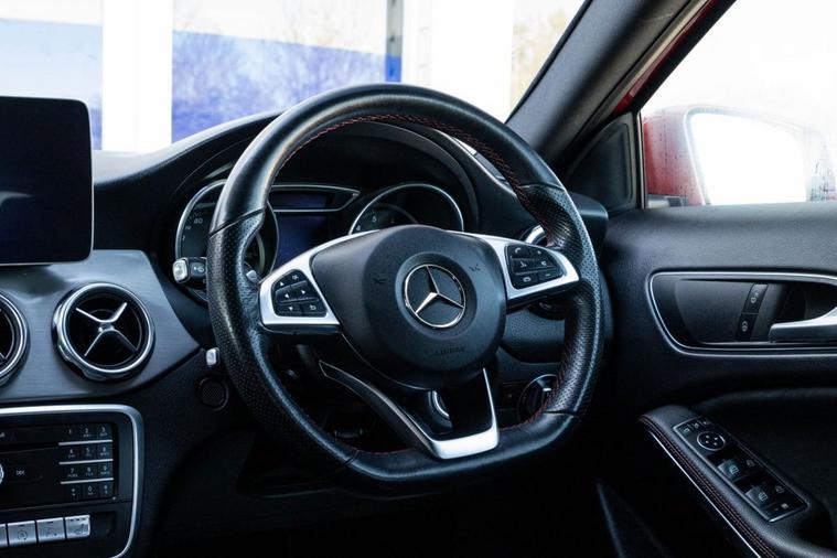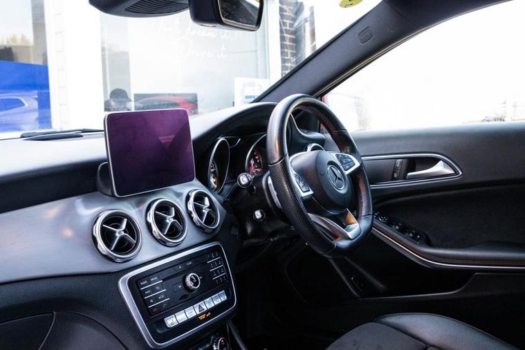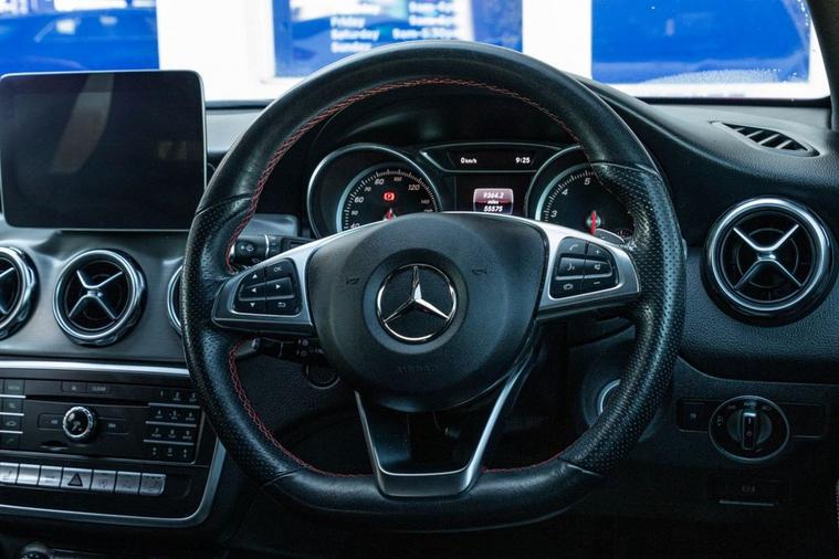 This 2019 Mercedes Benz GLA200 AMG Line (Premium) comes with 2 keys, Full Main Dealer service history and will also have a fresh service from our in house technicians along with a minimum MOT of 8 months. The car has covered only 55, 500 miles and is in great condition. The vehicle has undergone an extensive PDI check along with a 50 mile road test and performs as expected. Powered by a responsive 1.6 litre petrol engine, this Euro 6 compliant vehicle offers an engaging driving experience with a brisk 0-60mph acceleration time of just 8.1 seconds. The AMG Line trim ensures a sporty aesthetic, complemented by the Premium package which adds desirable features for enhanced comfort and convenience. The GLA200 AMG Line (Premium) stands out with its generous boot space, making it a practical choice for everyday life and longer journeys alike. This particular models impressive acceleration demonstrates its dynamic performance, setting it apart from many other vehicles in its class. It combines the renowned quality and luxury of Mercedes Benz with the versatility and style expected from the GLA range.