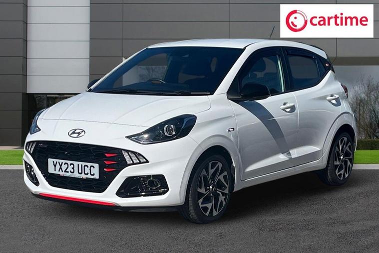 With an MOT valid until March 2027 and a clear vehicle history check, this 2023 Hyundai i10 T GDi N Line offers excellent peace of mind. This stylish hatchback boasts a 1.0 litre petrol engine, meeting Euro 6 emission standards, and has covered a low mileage of just 12, 000 miles for its age. Inside, youll find a host of convenient features including wireless Apple CarPlay and Android Auto, a rear view parking camera for easier manoeuvring, automatic headlights, and climate control air conditioning, all contributing to a comfortable and connected driving experience. This Hyundai i10 T GDi N Line stands out with its impressive fuel economy, achieving up to 52 miles per gallon, and its low CO2 emissions. These figures indicate that this vehicle is more economical and environmentally friendly than many others in its class. Furthermore, its acceleration from 0 to 60 miles per hour in just 10.5 seconds demonstrates a responsive performance that enhances its appeal.