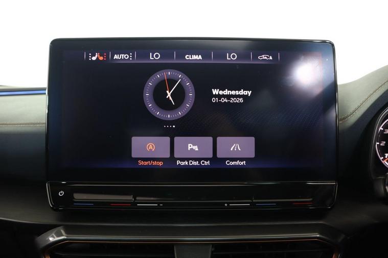 This 2022 CUPRA Formentor TSI VZ2 boasts a single owner and a recent service in November 2024 at 29, 731 miles, ensuring excellent provenance. This Euro 6 compliant, four wheel drive model is powered by a 2.0 litre petrol engine, offering a compelling blend of performance and efficiency. Notable features include Kessy keyless entry and start, full LED headlights for superior visibility, and the Safety and Driving Pack XL which incorporates Blind Spot Assistance. Inside, youll find a heated Supersports multifunction leather steering wheel with satellite buttons and gearshift paddles, alongside Park Assist with front and rear sensors for effortless manoeuvring. The Formentor TSI VZ2 truly stands out with its impressive acceleration, achieving 0-62mph in a rapid 4.9 seconds, a performance metric that places it ahead of many comparable vehicles. This dynamic capability, combined with its advanced technology and comfort features, makes this CUPRA Formentor a distinguished choice for those seeking an engaging and well equipped driving experience.
