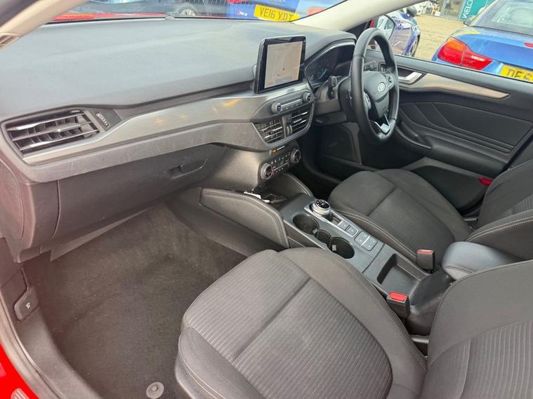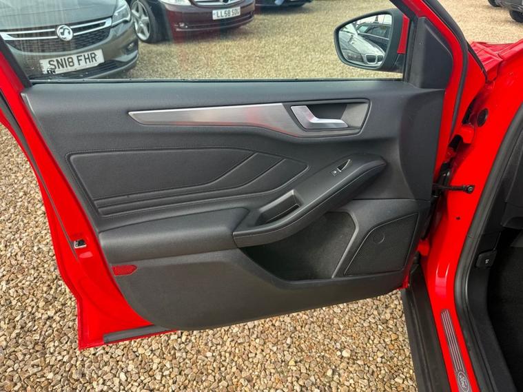 This 2019 Ford Focus 1.0 EcoBoost Titanium Estate Automatic is a spacious, practical and economical family estate finished in red and offering excellent specification throughout. Powered by the award winning 1.0 EcoBoost petrol engine with automatic gearbox, this Focus delivers a great balance of performance and economy with up to 47.1 MPG while remaining cheap to insure at Group 12. The estate body style offers a huge amount of space for family life, dogs, pushchairs, luggage or work use while still being easy to drive and park. The Titanium specification is excellent and includes Ford SYNC 3 satellite navigation, Bluetooth, DAB radio, Apple CarPlay, Android Auto, heated front seats, dual zone climate control, keyless entry and keyless start. Further specification includes front and rear parking sensors, cruise control with speed limiter, lane keeping aid, Quickclear heated windscreen, automatic headlights, rain sensing wipers, heated folding door mirrors, front and rear electric windows, 16in alloy wheels, roof rails, leather multifunction steering wheel and selectable drive modes. Inside, the Focus offers a high quality and modern interior with sports style seats, rear armrest, split folding rear seats and a large boot area, making it an ideal family estate or everyday car. Safety features include front and rear parking sensors, Active City Stop, pre collision assist with pedestrian detection, lane departure warning, ISOFIX child seat points, hill start assist, tyre pressure monitoring, traction control and multiple airbags throughout the cabin. For April only this Ford Focus comes with 12 months warranty including breakdown cover. It will also be freshly serviced and supplied with a new MOT before it leaves us. Every vehicle at Almondell Motor Company is fully HPI checked, professionally valeted and prepared at our trusted independent workshop in Broxburn. We pride ourselves on offering quality used cars with complete transparency and excellent aftercare. A well specified automatic estate with excellent practicality, low running costs and fantastic value for money.