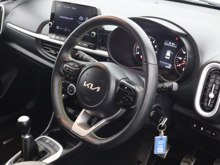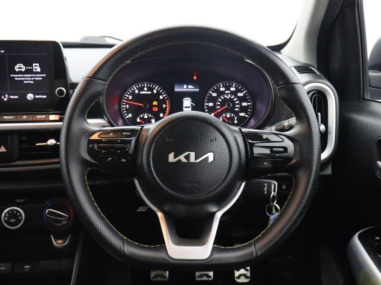 With 61, 370 miles, this Kia Picanto 1.0 DPi X-Line Hatchback is a compact and stylish city car that offers excellent efficiency, practicality and modern technology. Finished in grey, this Kia Picanto X-Line is powered by the reliable 1.0 DPi petrol engine producing 66 bhp, paired with a manual transmission for a smooth and economical driving experience. As a Euro 6 compliant petrol hatchback, it delivers low running costs, making it an ideal choice for city driving, commuting or first-time drivers. Inside, this Kia Picanto X-Line is well equipped with a range of features designed to enhance connectivity and convenience. Apple CarPlay and Android Auto with voice control provide seamless smartphone integration, allowing easy access to navigation, music and apps on the move. Bluetooth with music streaming ensures hands-free communication and entertainment, while the reversing camera system with dynamic guidelines and rear parking sensors make parking and manoeuvring simple and stress-free, even in tighter spaces. The Kia Picanto 1.0 DPi X-Line is widely recognised for its compact size, reliability and modern features, making it one of the most popular used small hatchbacks available. Combining stylish design, efficient petrol performance and everyday practicality, this used Kia Picanto hatchback represents a fantastic opportunity for anyone looking for a well-equipped, economical and easy-to-drive city car with modern technology.
