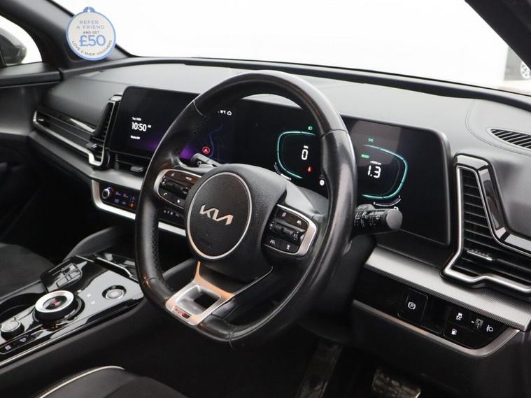 This 2023 Kia Sportage T GDi GT Line is a superb example, having had only one owner from new and boasting a full service history. This Euro 6 compliant, four wheel drive model features a 1.6 litre petrol plug in hybrid engine, offering an efficient and capable driving experience. The GT Line trim level ensures a host of desirable features, including front and rear parking sensors with camera assistance, making manoeuvring effortless. Inside, youll appreciate the comfort of heated front seats and the convenience of three zone climate control, ensuring everyone stays comfortable. Stay connected and entertained with Android Auto and Apple CarPlay integration, complete with voice control. The Sportage also offers generous boot space, perfect for all your luggage or shopping needs. These carefully selected features and its excellent provenance demonstrate how this Kia Sportage stands out from other vehicles, providing a refined and practical choice for your next car.