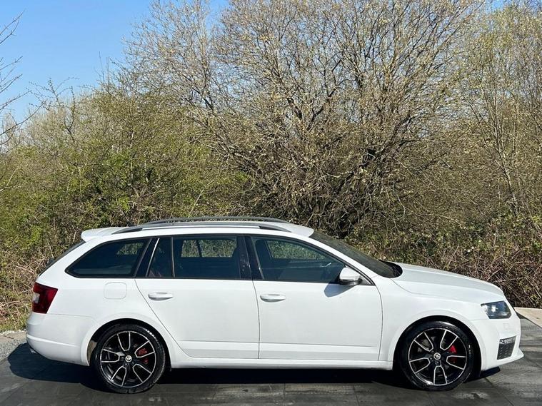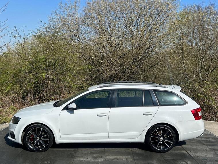 SKODA OCTAVIA 2.0 TDI VRS ESATE 5DR DIESEL DSG EURO 6 IN WHITE, GENUINE 93150 MILES WITH AN EXCELLENT SERVICE RECORD, 2 X KEYS, 6 MONTHS WARRANTY INCLUDED, XENON HEADLIGHTS, FRONT FOG LIGHTS, REAR PARK SENSORS, COLOUR CODED EXTERIOR, 18 ALLOYS, TWIN EXHAUST, ROOF RAILS, AUTO LIGHTS/WIPERS, FLAT BOTTOM MULTI FUNCTION STEERING WHEEL, VOICE COMMAND, PADDLE SHIFT, TRIP COMPUTER, MULTIPLE DRIVE MODES INCLUDING SPORT, ECO AND INDIVIDUAL, START/STOP, DUAL CLIMATE CONTROL WITH AC, APPLE CAR PLAY/ANDROID AUTO, BLUE TOOTH, DAB DIGITAL, SATELLITE NAVIGATION , VRS EMBOSSED HALF LEATHER SPORTS SEATS, AND ISOFIX.