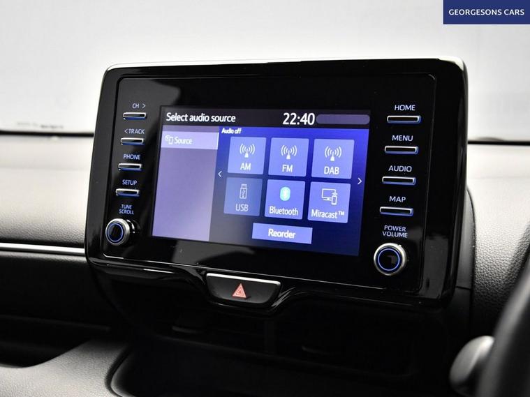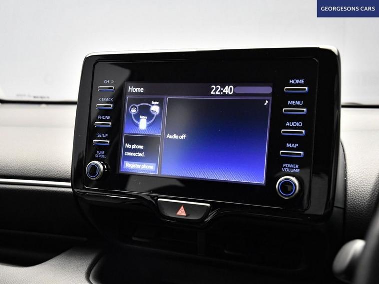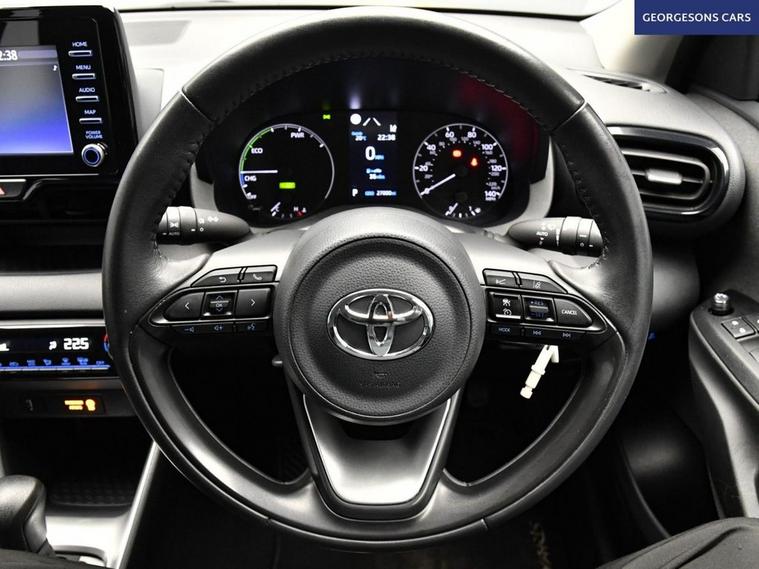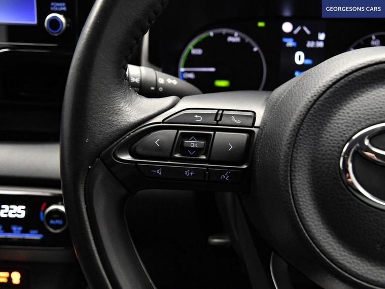 The Toyota Yaris 1.5 VVT-h Icon combines a smooth self-charging hybrid system with 116hp total output, delivering 0-62mph in 9.7 seconds and up to 64.2mpg in this front-wheel-drive setup with a seamless e-CVT automatic transmission. The Icon trim offers premium everyday comfort with 15-inch alloy wheels and a refined interior With just one former owner and 4 services, this Yaris is in excellent condition. Stay connected with Bluetooth and DAB radio. Parking is a breeze thanks to the reverse camera. Stay comfortable with climate control. Adaptive cruise control and lane assist make every journey relaxed and safe. The practical five-door hatchback includes a 286-litre boot.