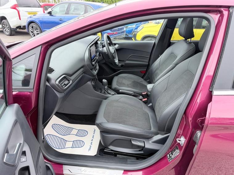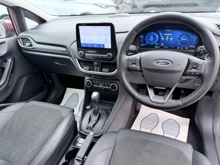 This 2022 Ford Fiesta Titanium Vignale boasts an exceptionally low mileage of just 16, 250 miles, a testament to its careful single owner. This Euro 6 compliant 1.0L Petrol Hybrid is presented with a full dealership service history, most recently serviced on 28 February 2025 at 11, 975 miles. A 12 month MOT will be provided on purchase, and the vehicle comes with a 3 month warranty for your peace of mind. Experience the refined features of this Fiesta, including an opening panorama roof that floods the cabin with light, and a premium B&O sound system for an immersive audio experience. LED headlights with integrated daytime running lights and fog lights ensure excellent visibility, while the Winter Pack adds heated seats and a heated steering wheel for comfort in colder weather. Automatic electronic air conditioning maintains your preferred cabin temperature. The 0-60mph acceleration of 9.6 seconds highlights its responsive performance, making it a more engaging drive than many comparable vehicles.