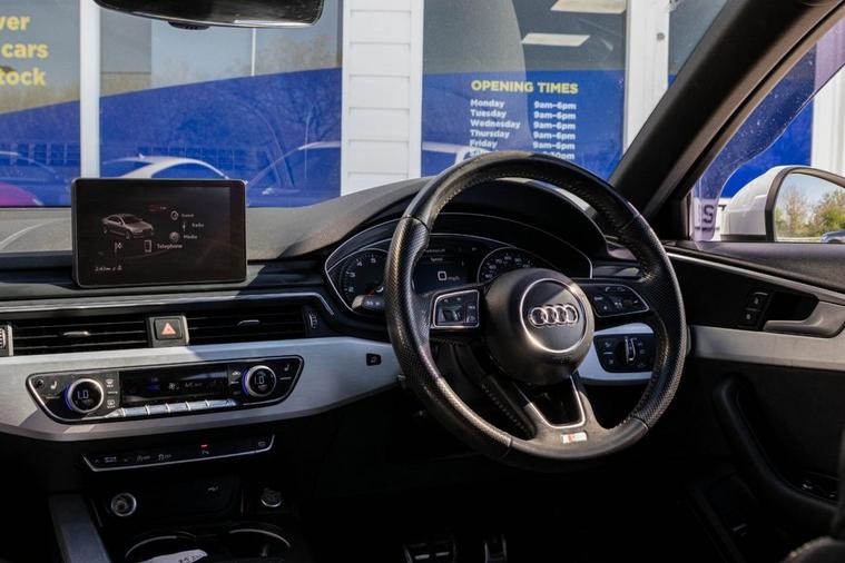 This 2018 Audi A4 TFSI S line comes with documented service history and will also have a fresh service from our in house technicians along with a minimum MOT of 8 months. The car has covered only 52000 miles and is in great condition. It comes with a collection of extras such as heated electric seats panoramic roof and much much more. The vehicle has undergone an extensive PDI check along with a 50 mile road test and performs as expected. This stylish saloon features a 1.4 litre petrol engine and is presented in the sought after S line trim. Inside, youll find comfortable heated front seats, a deluxe 3 zone electronic climate control system, and a Bluetooth interface for seamless connectivity. For convenience and safety, this Audi is equipped with light and rain sensors, ensuring automatic headlight activation, and a parking system plus with front and rear sensors to assist with manoeuvring. The Audi A4 TFSI S line stands out with its impressive fuel economy, achieving up to 51 miles per gallon, which is a significant advantage for your running costs. Furthermore, its Euro 6 emission class and low CO2 emissions indicate a more environmentally conscious choice compared to many other vehicles. This model also benefits from a low insurance group, making it an economical option to own and run.