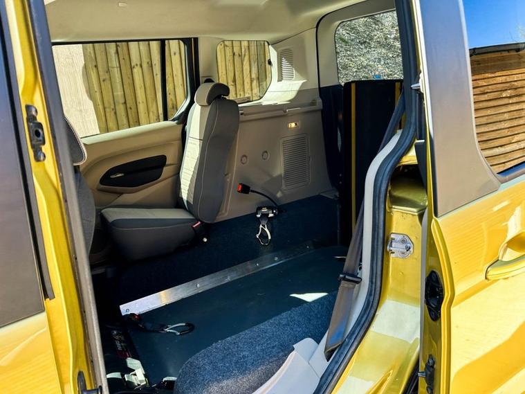 This Brotherwood Mobility converted Ford Connect Wheelchair Accessible Vehicle (WAV) has 3 Seats (2 Front and 1 Rear). Equipment includes Wheelchair Ramp, Electric Winch, Air Conditioning, Electric Front Windows, Electric Adjustable Wing Mirrors, Power Steering, Remote Central Locking, Tinted Rear Windows.