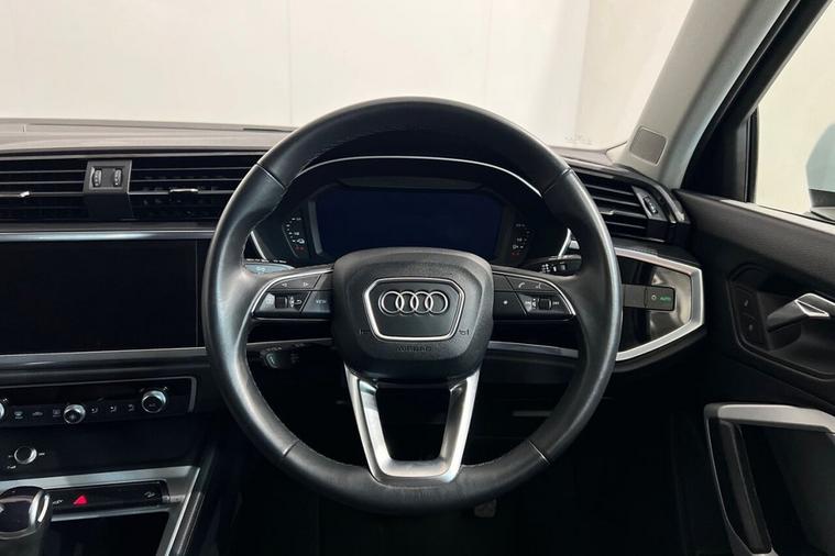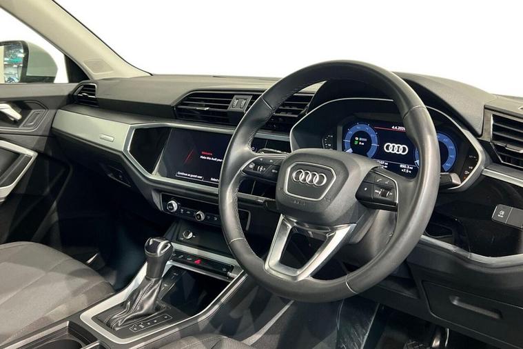 This 2023 Audi Q3 TFSIe Technik boasts exceptionally low mileage for its age, having covered just 16, 799 miles, and has been owned by only one careful owner. This Euro 6 compliant plug-in hybrid features a 1.4 litre petrol engine, offering an efficient and versatile driving experience. The MOT is valid until January 2027, and a clear vehicle history check confirms its excellent condition. Inside, youll find the Audi Smartphone Interface with wireless Apple CarPlay and Android Auto, a Bluetooth interface for seamless connectivity, and dual-zone electronic climate control to ensure comfort for all occupants. The Technik trim level includes LED headlights with LED daytime running lights for enhanced visibility, complemented by rear parking sensors to aid manoeuvring. These features, combined with the vehicles low mileage and single owner history, demonstrate a superior level of care and maintenance compared to other similar models on the market. This Audi Q3 TFSIe Technik represents a well maintained and technologically advanced option for those seeking a premium compact SUV.