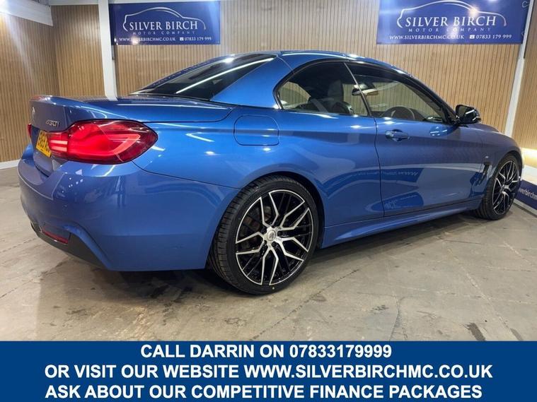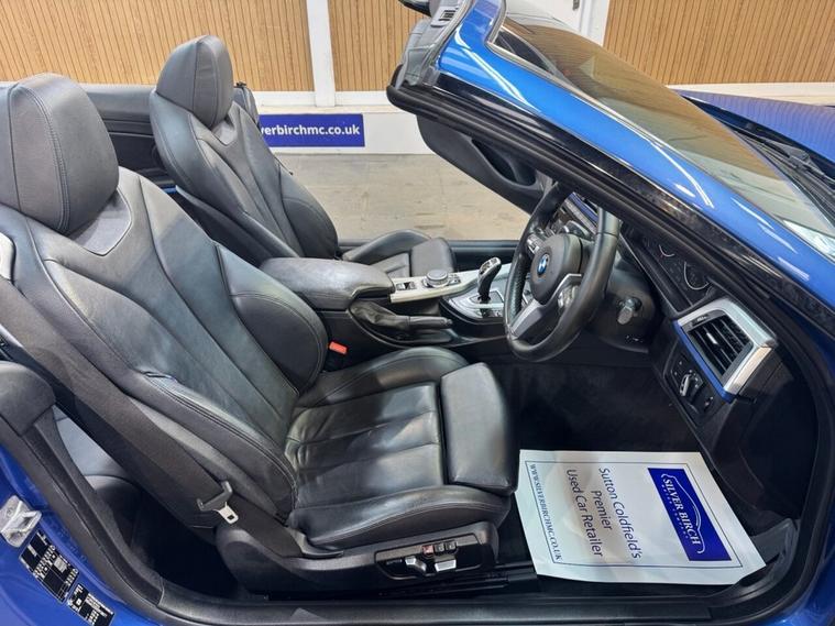 +++Please see our video+++12 Months AA breakdown cover included, 3 months Platinum Warranty included, which can be extended. (ask for details). VIEWING BY APPOINTMENT ONLY, CALL DARRIN ON 01215402051 Source-Here at Silver Birch Motor Company, we have managed to secure this BMW 430i M Sport Convertible, Hard Top in directly from a main agent, where it was taken as a part exchange for a newer car. CONDITION - it has been well looked after from its 2 owners from new, +++++SERVICE HISTORY - its offered with BMW Service history, with 7 services done so far, Its most recent service was completed at 50090 miles, ++++Finished stunning Estoril Blue with Dakota Black leather Interior (heated front seats) It boasts an extremely clean and tidy interior that has never been smoked in or abused in any way. MOT 06/04/2027 with no advisories, We have 2 keys and its ready to drive away today.