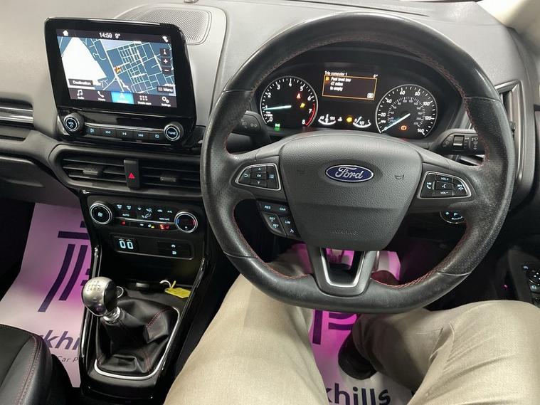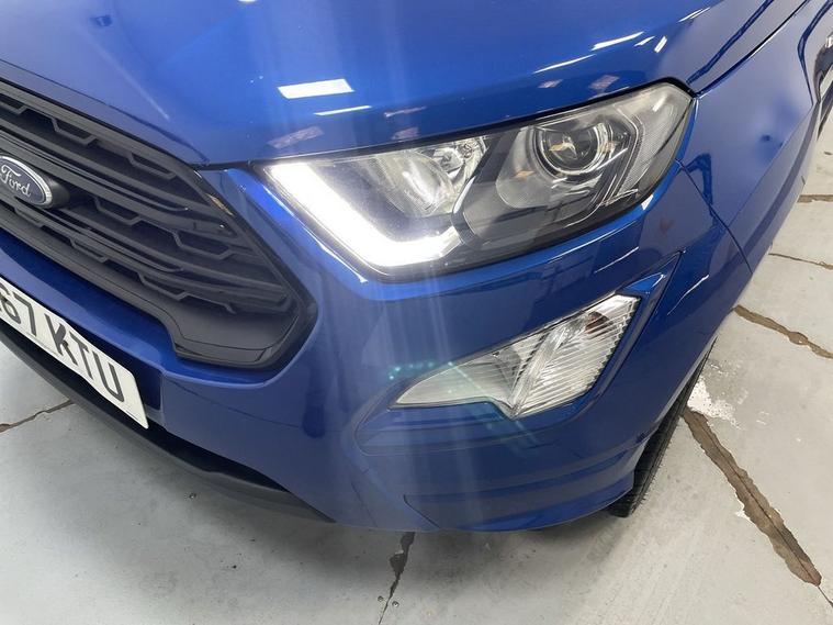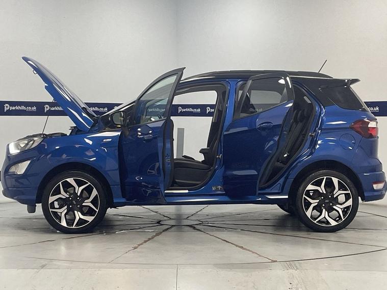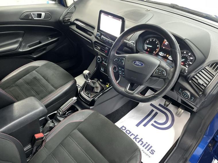 7 STAMP SERVICE HISTORY, ST-LINE BODYSTYLING, PRIVACY GLASS, SPORTS ALCANTARA/LEATHER, FORD INFOTAINMENT INCLUDING HDD SAT NAV, DAB RADIO, BLUETOOTH PHONE HANDSFREE AND MEDIA, AIR CON WITH CLIMATE, 18 UPGRADE ALLOYS, DAYTIME RUNNING LIGHTS, SHADOW BLACK CONTRAST ROOF AND MIRRORS, CRUISE CONTROL, FLEXIBLE MONTHLY PAYMENTS AVAILABLE ON THIS CAR, This 2018 Ford EcoSport T ST-Line finished in Lightning blue metallic presents a remarkable opportunity with exceptionally low mileage for its age, having covered just 43, 190 miles. This stylish SUV is powered by an efficient 1.0L petrol engine, meeting Euro 6 emissions standards. It boasts a sophisticated Ford DAB Navigation System with Ford SYNC3, offering seamless integration with Android Auto and Apple CarPlay, alongside Bluetooth connectivity for your devices. Comfort is assured with Electronic Automatic Temperature Control (EATC) providing climate control, and parking is made easier with a rear view camera and rear parking sensors. The striking 18in alloy wheels in a Shadow Black Machined Finish complement its sporty ST-Line trim. The EcoSport ST-Line stands out with its impressive fuel economy, achieving a highlight of 54 miles per gallon, which indicates it is more economical than many similar vehicles. Furthermore, its low CO2 emissions are another key advantage, suggesting a more environmentally conscious choice. This combination of efficiency, technology, and sporty design makes this Ford EcoSport a compelling option for those seeking a well equipped and economical compact SUV. Electric windows, electric mirrors, remote central locking, adjustable headlights, cd - aux music, isofix seating , remote central locking, Supplied with HPI report and vehicle book pack. THIS CAR IS AA APPROVED AND SOLD WITH A 145 POINT AA INSPECTION CERTIFICATE AND A NATIONWIDE PARTS AND LABOUR WARRANTY, SAME DAY DRIVE AWAY AVAILABLE ON ALL AA INSPECTED CARS. WE OFFER WITH ALL OF OUR CARS A BRONZE, SILVER AND GOLD PROTECTION PACKAGE WHICH INCLUDES A 145 POINT AA INSPECTION, NATIONWIDE ALL MECHANICAL AND ALL ELECTRICAL WARRANTY, AA BREAKDOWN COVER, 12 MONTHS MOT TOP UP VOUCHER, GARDEX SANITIZATION, HPI GOLD CHECK AND COURTESY CAR AVAILABILITY FROM £299. WE ALSO OFFER ALL TYPES OF FINANCE. 3 YEAR PARTS / LABOUR WARRANTY AND SERVICE PLANS AVAILABLE ON ALL AA INSPECTED CARS.