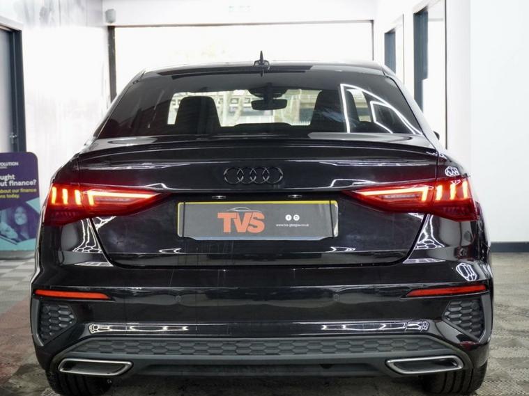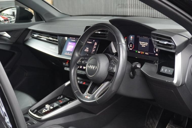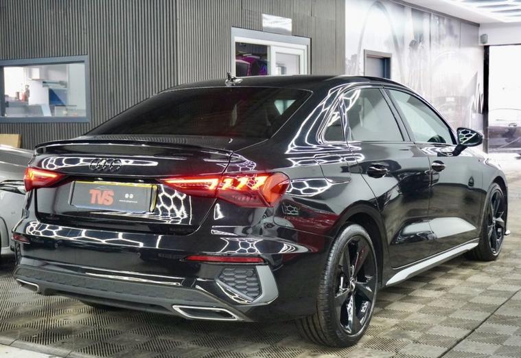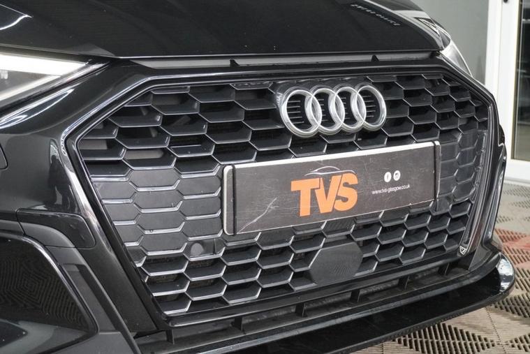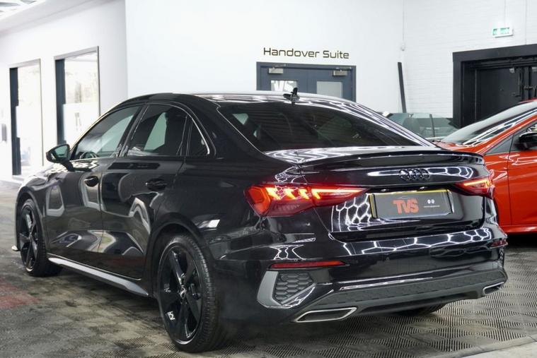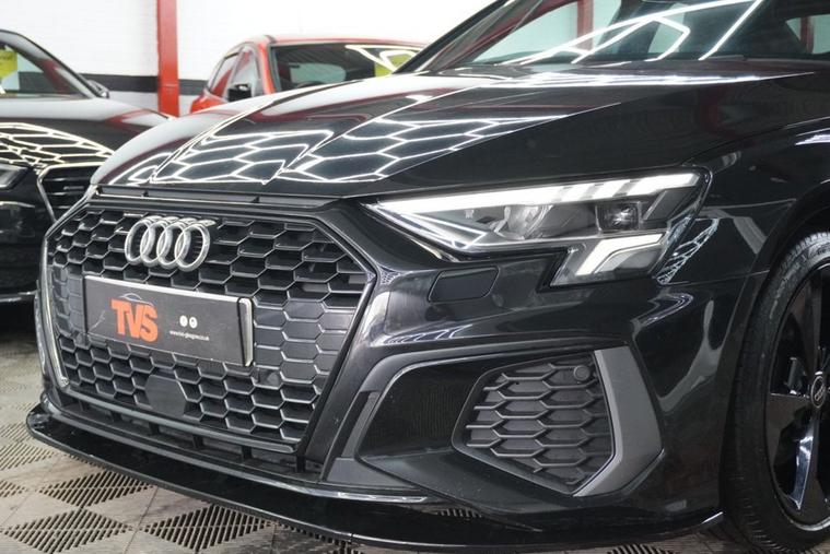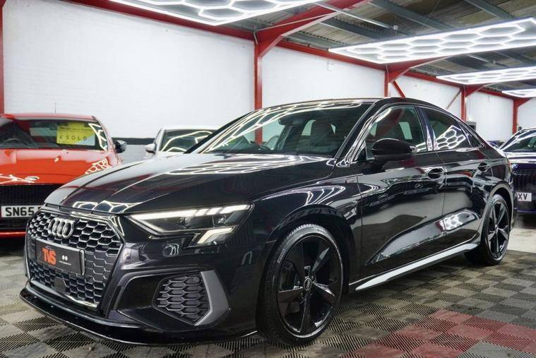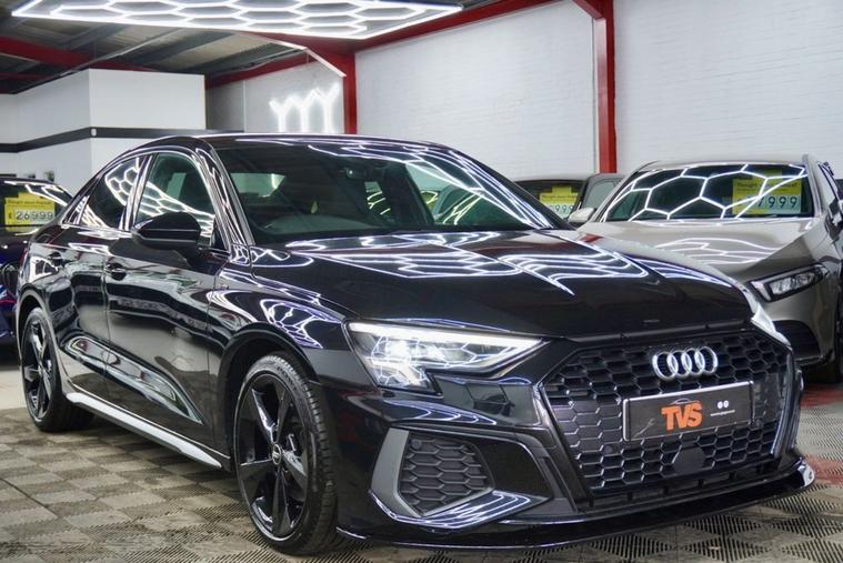 2021 Audi A3 S Line 35 TFSI S Tronic 150ps 4 door saloon (Euro 6)- Automatic - Mythos Black with full black leather interior - only 30k miles - only 1 former keeper - 2 remote keys - Audi main dealer service history - just serviced for sale by independent Audi specialist with Audi DSR updated - fresh 12 months MOT with no advisories - Platinum warranty - full 12 months AA roadside assistance also included! Black Edition Styling Pack! RS splitter and spoiler! Gloss black S Line alloy wheels!