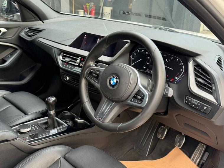 This 2019 BMW 1 Series 118i M Sport presents a compelling proposition with its remarkably low mileage of just 39, 000 miles for its age, coupled with a clear vehicle history check. This Euro 6 compliant model boasts a spirited 1.5L petrol engine, delivering an engaging 0-60mph time of 8.5 seconds. The M Sport trim enhances its dynamic appeal, featuring striking 18in M V Spoke Style 554M Orbit Grey alloy wheels fitted with performance tyres. Inside, youll find the M Sport Plus Pack and luxurious Perforated Dakota Leather upholstery in Black with a distinctive Blue Highlight, all illuminated by crisp LED headlights. The inclusion of the M Sport Plus Pack and the premium leather interior signifies a higher level of specification compared to many other vehicles in its class. Furthermore, the Bluetooth Hands Free with USB Audio Interface ensures seamless connectivity on every journey. This BMW 1 Series 118i M Sport combines sporty aesthetics with practical technology, offering a refined driving experience that stands out.