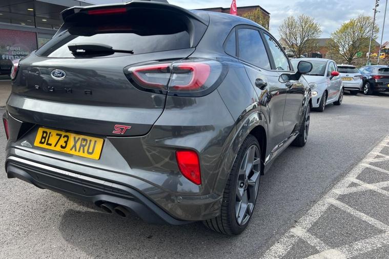 This 2023 Ford Puma ST is a remarkable find, having had only one owner since new. It boasts a powerful 1.5L Petrol Engine and meets Euro 6 emission standards, making it an efficient choice. This ST trim level comes equipped with a desirable Driver Assistance Pack, which includes rear parking assistance, and a Winter Pack featuring heated seats and a heated steering wheel for those colder journeys. Youll also appreciate the convenience of rear parking sensors, a wireless charging pad integrated with electronic air temperature control for a comfortable cabin, and the Ford KeyFree System for effortless keyless entry. Experience exhilarating performance with this Ford Puma ST, capable of accelerating from 0 to 60mph in a swift 6.7 seconds. This impressive acceleration demonstrates its sporty nature and superior driving dynamics compared to other vehicles in its class. The combination of its sporty ST trim, advanced technology, and the comfort offered by the heated features ensures a truly engaging and enjoyable driving experience.