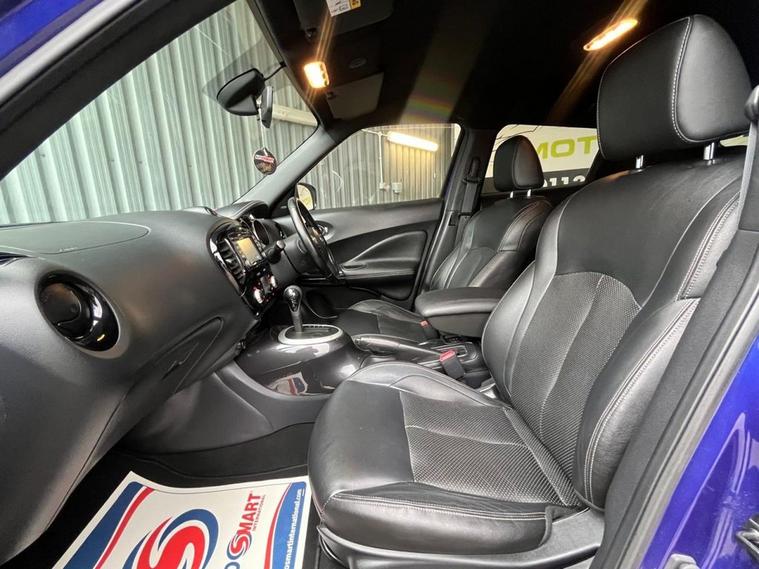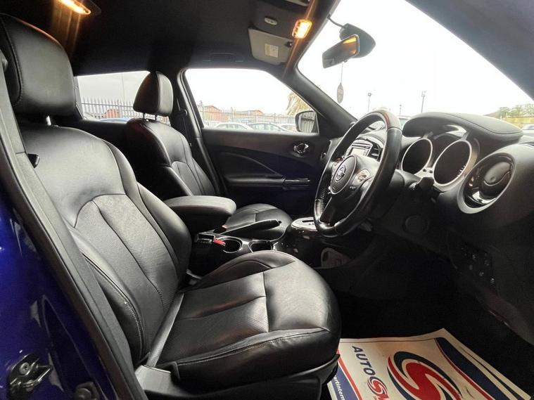 Moto Vation Car Sales are offering this AUTOMATIC Nissan Juke in a great colour with full Black leather interior. Low miles for the age- 61K and with only One previous owner from new, it is clear it has been loved. Would make a great first time car with its low running and insurance costs. Supplied with a full years MOT and full service history attached with 9 stamps- last in our Service Centre in 04/26! Bosting a great specification including a Multi Functional Steering Wheel, AUX, USB, 17 Alloys, Keyless Entry, Auto Headlghts, Bluetooth, Sat Nav, Reverse Camera, Nissan Connect, Cruise Control, Start/ Stop and Isofix. Please confirm with a Sales Executive the amount of keys this vehicle comes with. All of our vehicles come with a 3 months Nationwide warranty and a 12 months basic AA breakdown cover. Please read our reviews! Please note- the above vehicle specification is confirmed and correct. The vehicle specification listed elsewhere may sometimes be inaccurate so please check with the Sales team when enquiring to clarify this prior to purchase.