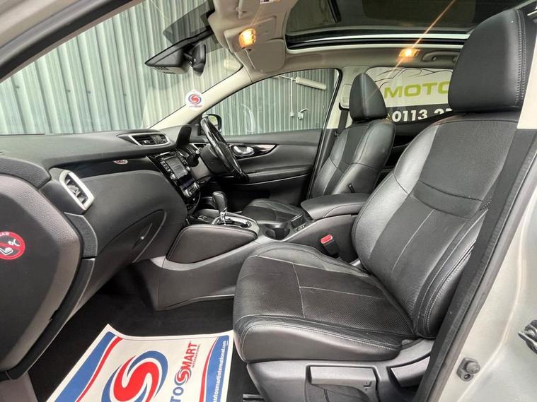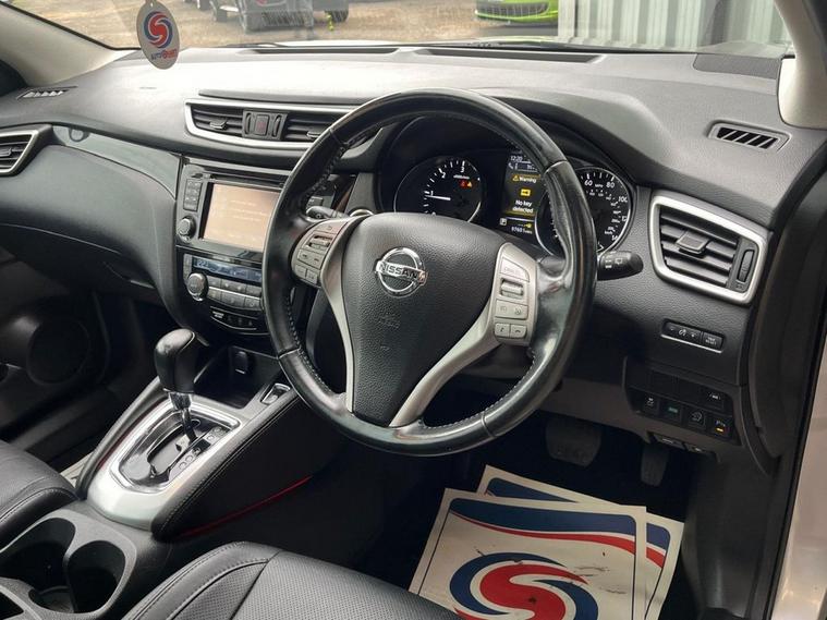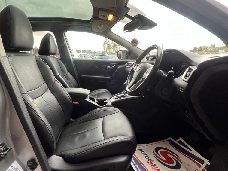 Moto Vation Car Sales are offering this Automatic Nissan Qashqai in a desirable colour with full Black leather interior and a Panoramic Roof. Reasonable miles for the age and with only 2 previous owners from new, it is clear it has been loved. Would make a great family car or for anyone looking for a bigger space. Supplied with a long MOT until 28/02/27 and full service history attached with 10 stamps- last in our service centre in 04/26 along with a Gearbox service. Annual tax £170 Bosting a great specification including a Multi Functional Steering Wheel, AUX, USB, 19 Alloys, Bluetooth, Electric Heated Seats, Cruise Control, 18 Alloys, Auto Headlights, Lane Assist, Sat Nav, Park Assist, Keyless Entry, Reverse Camera and Isofix. £170 Annual Tax. Please confirm with a Sales Executive how many keys this car comes with. All of our vehicles come with a 3 months Nationwide warranty and a 12 months basic AA breakdown cover. Please read our reviews! Please note- the above vehicle specification is confirmed and correct. The vehicle specification listed elsewhere may sometimes be inaccurate so please check with the Sales team when enquiring to clarify this prior to purchase.