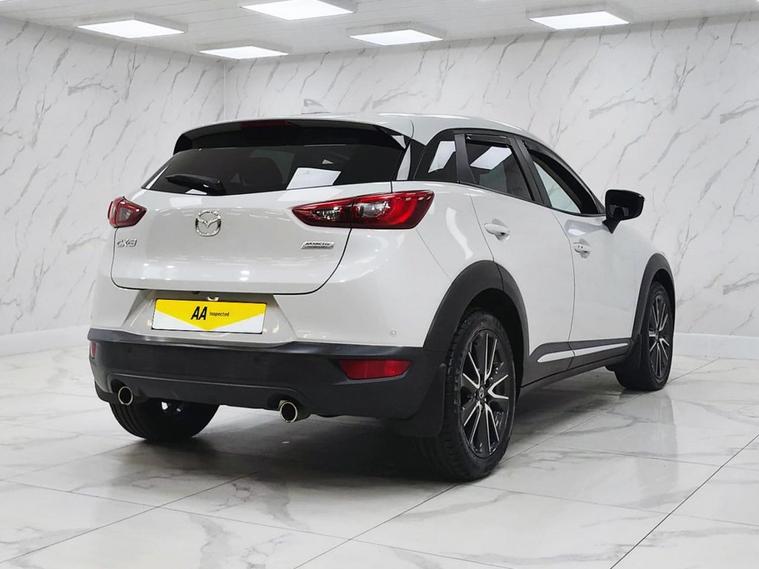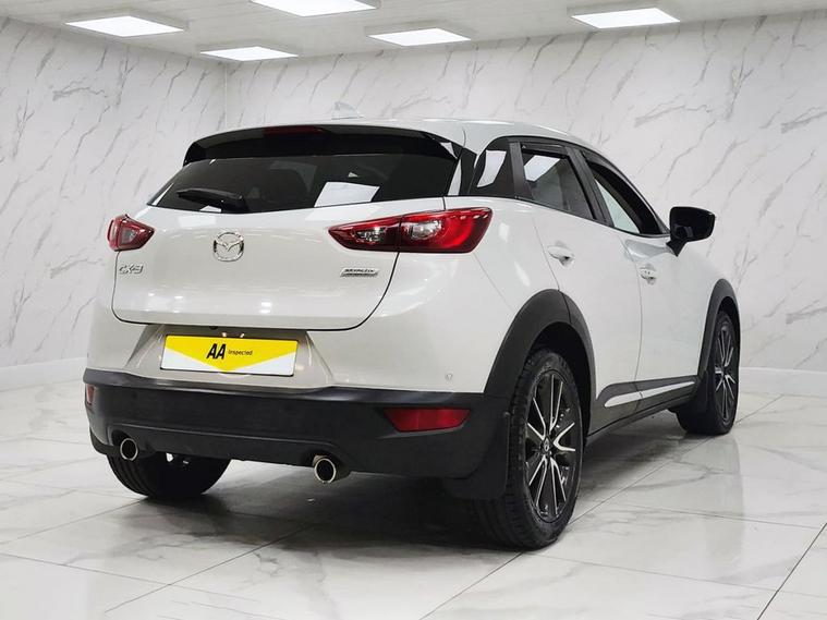 This 2017 Mazda CX-3 SKYACTIV-G Sport Nav is presented with a clear vehicle history check and will be supplied with a full 12 months MOT for your peace of mind. This stylish CX-3 is powered by a responsive 2.0 litre petrol engine and meets Euro 6 emissions standards. Key features include dusk sensing automatic headlights, LED headlights, smart keyless entry, a head up display, and heated front seats, all designed to enhance your driving experience. This Sport Nav model offers impressive performance with a 0-60mph acceleration time of 9.0 seconds. Its fuel economy is a notable highlight, achieving up to 48 miles per gallon, which, along with its low CO2 emissions and low insurance group, indicates it is a more economical choice compared to similar vehicles.