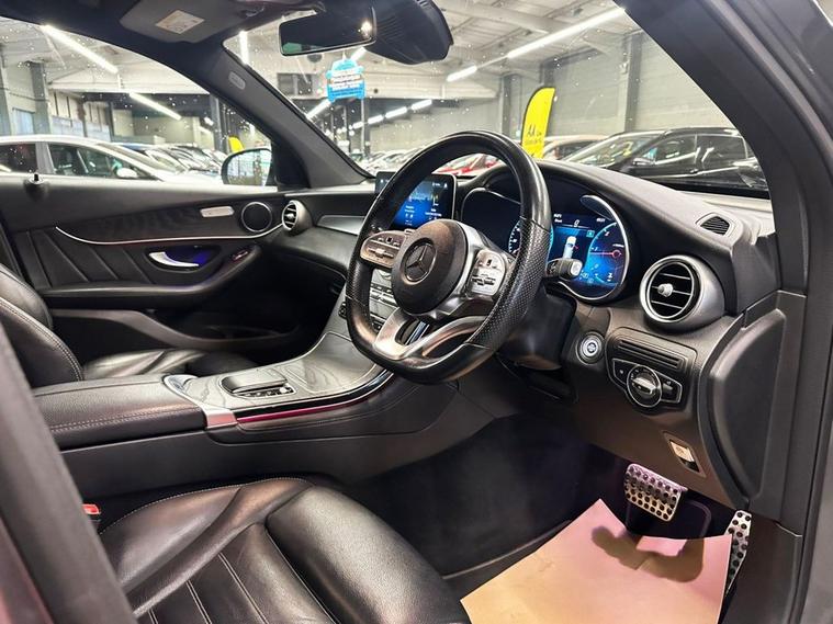 This 2019 Mercedes Benz GLC220d AMG Line (Premium) boasts an MOT valid until February 2027, offering excellent peace of mind. This four wheel drive SUV features a 2.0L Euro 6 diesel engine, delivering a strong performance with a 0-60mph time of just 7.7 seconds. The AMG Line trim enhances its sporty appeal, while the Premium designation includes sought after features such as MULTIBEAM LED headlights, heated front seats, and Thermatic automatic climate control. Smartphone integration, including Android Auto and Apple CarPlay, keeps you connected on the go, and the automatic headlamp activation adds convenience. With a substantial towing weight of 2500 kg and generous boot space, this GLC is as practical as it is stylish. Its fuel economy is a notable highlight, achieving up to 46 mpg, which is impressive for its class. Furthermore, its low CO2 emissions demonstrate a commitment to efficiency. These highlights collectively indicate that this Mercedes Benz GLC offers a superior driving experience compared to many other vehicles in its segment, combining performance, comfort, and economy.