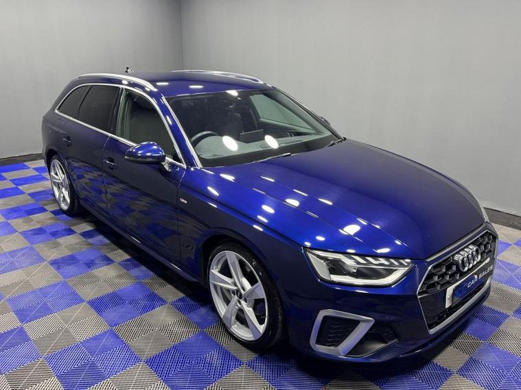 AJC Car sales presents the popular and practical AUDI A4 AVANT 2.0 TDI 35 S line Estate 5dr Diesel S Tronic Euro 6 (s/s) (163 ps) finished off in Navarra Blue Metallic with 19 5 Spoke Design Alloys and a Great Service Record. The 2021 Audi A4 Avant 2.0 TDI 35 S line Estate is a refined and practical premium vehicle that combines sleek design, advanced technology, and efficient performance. Powered by a responsive 2.0-litre TDI diesel engine producing 163 PS, paired with a smooth S Tronic automatic transmission, it delivers an excellent balance of performance and fuel economyachieving over 50 mpg combined with low emissions compliant with Euro 6 standards. Presented in the desirable S line trim, this model features distinctive sporty styling, including S line body enhancements, larger alloy wheels, and a lowered sports suspension for improved handling and road presence. The exterior is complemented by LED headlights, aluminium roof rails, privacy glass, and Audis signature design detailing, creating a modern and dynamic look. Inside, the cabin offers a premium, driver-focused environment with high-quality materials and advanced technology throughout. Key features include Audi Virtual Cockpit, MMI Navigation Plus with a high-resolution touchscreen, Bluetooth connectivity, DAB radio, and a multifunction leather steering wheel. Comfort is enhanced with heated front seats, three-zone climate control, and ample space for both passengers and luggage, with a versatile estate boot capacity ideal for family or business use. Safety and convenience are at the forefront, with features such as front and rear parking sensors, rear-view camera, lane departure warning, cruise control, and Audi pre-sense systems providing confidence on every journey. Combining practicality, efficiency, and premium build quality, the Audi A4 Avant S line is an excellent choice for those seeking a stylish and reliable estate car with strong everyday usability and long-distance comfort.