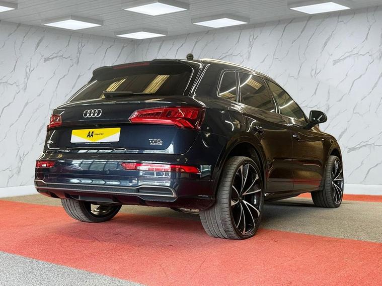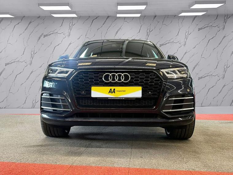 This 2018 Audi Q5 TFSI S line boasts exceptionally low mileage for its age, having covered just 56, 164 miles. This premium SUV features a powerful 2.0 litre petrol engine paired with Audis renowned Four Wheel Drive system, ensuring confident performance in all conditions. As a Euro 6 compliant vehicle, it meets modern emissions standards. The S line trim enhances its sporty appeal, and youll appreciate the convenience of LED headlights with dynamic rear indicators, the Audi Parking System Plus for effortless manoeuvring, and the integrated Bluetooth interface for seamless connectivity. Comfort is also a priority, with heated front seats and automatic light and rain sensors for added ease on every journey. The Audi Q5 TFSI S line offers a compelling blend of performance and practicality. Its impressive acceleration, reaching 0-60mph in a swift 6.3 seconds, sets it apart from many similar vehicles. Furthermore, its substantial boot space provides ample room for luggage, shopping, or sports equipment, making it a versatile choice for families and active individuals alike. With a towing weight of 2400 kg, this Q5 is also well equipped for towing caravans or trailers.
