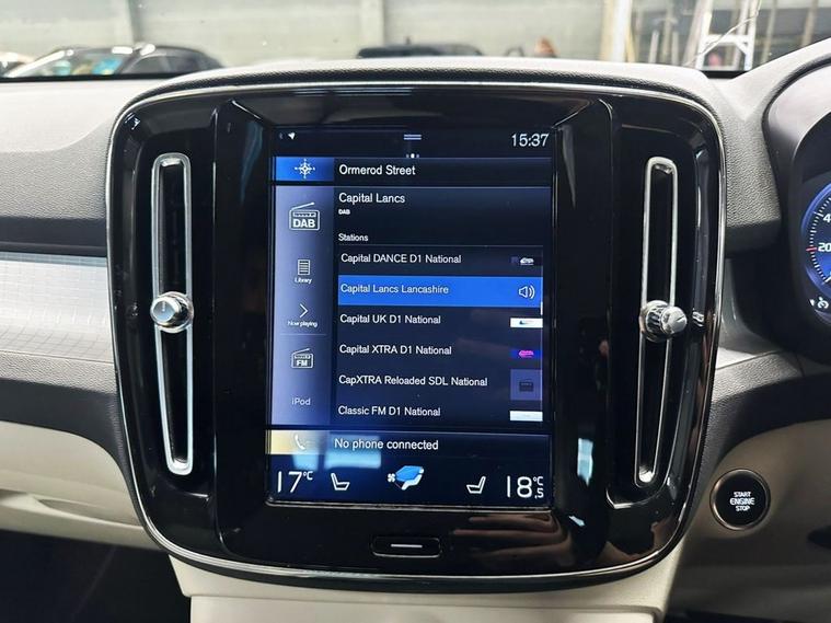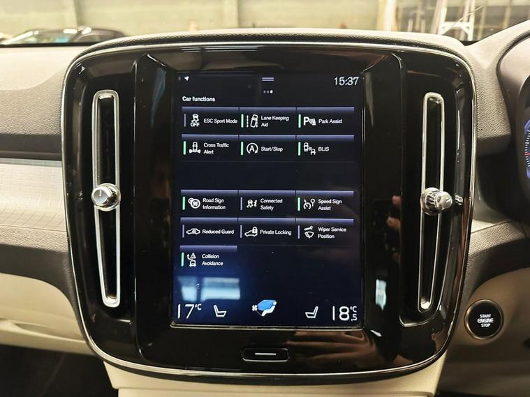 This 2019 Volvo XC40 T3 Momentum presents an exceptional opportunity with its remarkably low mileage of just 36, 117 miles. This Euro 6 compliant 1.5 litre petrol engine is paired with the Momentum trim, offering a refined driving experience. The vehicle benefits from an MOT valid until August 2026, providing peace of mind for the coming years. Notable features include the Winter Pack, which adds a heated front windscreen and heated seats, alongside the Intellisafe Surround system with Blind Spot Assistance for enhanced safety. Comfort is further assured by the 2 zone electronic climate control, complete with a CleanZone air quality system, pollen filter, and a cooled glovebox, all managed through the user friendly climate control interface. Autofolding door mirrors and a 12V socket in the front tunnel console add to the practical convenience of this well equipped XC40. The performance of this XC40 T3 Momentum is noteworthy, achieving 0-60mph in a brisk 9.0 seconds, demonstrating its capable acceleration. This level of responsiveness, combined with its comprehensive safety and comfort features, sets it apart from other vehicles in its class. The inclusion of features like the heated windscreen and seats, along with the advanced Intellisafe Surround system, highlights how this Volvo XC40 offers a superior driving experience, ensuring comfort and security in a variety of conditions.
