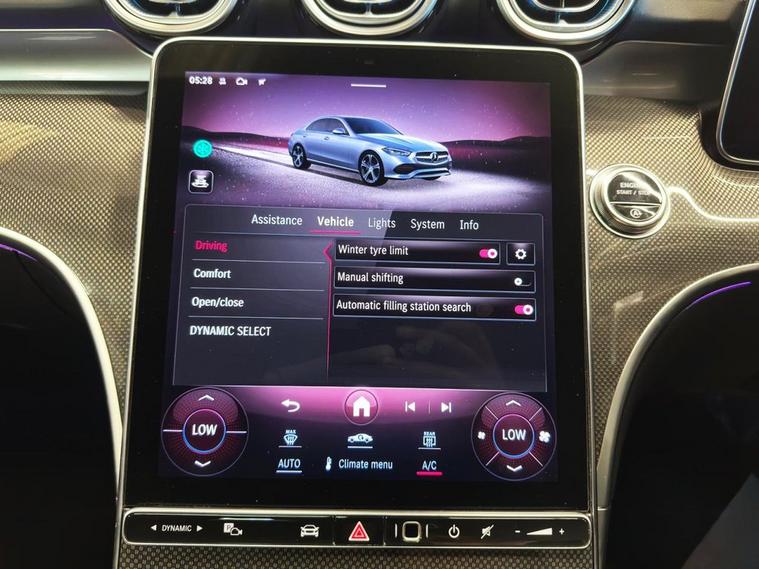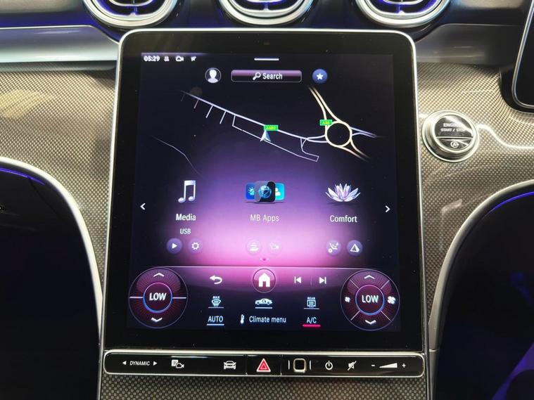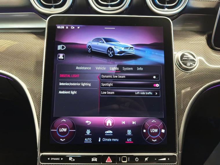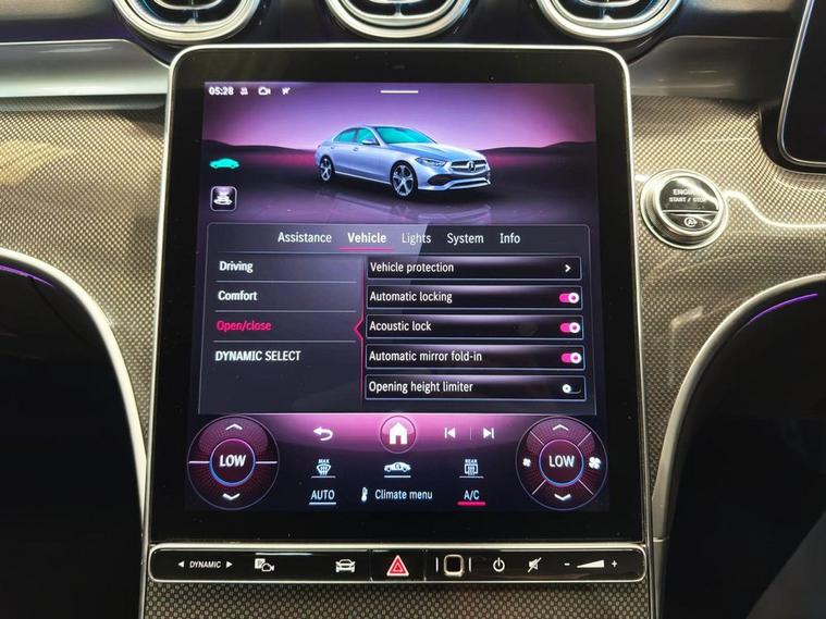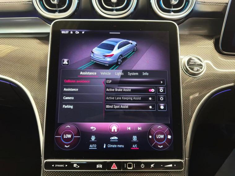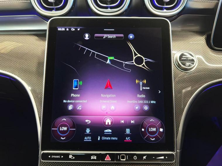 This 2022 Mercedes Benz C Class C220dh AMG Line (Premium) offers an exceptional blend of efficiency and luxury, boasting a remarkable 60 mpg fuel economy. As a Euro 6 compliant model, it features a sophisticated 2.0L Diesel Hybrid engine, ensuring a refined driving experience. The AMG Line trim enhances its sporty appeal, while the Premium designation brings a suite of desirable features. Stay comfortable with THERMATIC automatic climate control for two zones and enjoy the convenience of KEYLESS GO for effortless entry and starting. The inclusion of heated front seats adds an extra layer of comfort, especially during colder months. Navigating tight spaces is made simple with the Parking Package, complete with a 360-degree camera for complete visibility. Safety is paramount, with Blind Spot Assist actively monitoring your surroundings to help prevent collisions. The low CO2 emissions of this Mercedes Benz C Class highlight its commitment to environmental responsibility, making it a more considerate choice compared to many other vehicles in its class. This combination of advanced technology, fuel efficiency, and premium comfort makes the C220dh AMG Line a standout option.