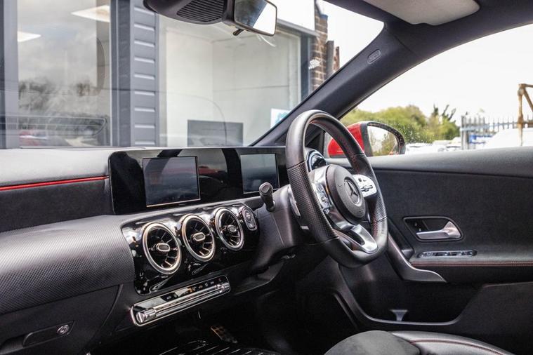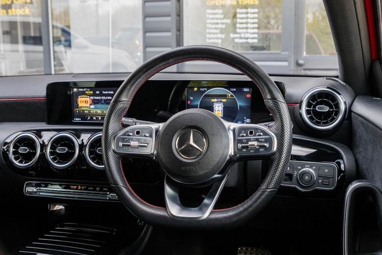 This 2019 Mercedes Benz A Class A180 AMG Line comes with 2 keys, Full Service History and will also have a fresh service from our in house technicians along with a minimum MOT of 8 months. The car has covered only 34, 700 miles and is in great condition. The vehicle has undergone an extensive PDI check along with a 50 mile road test and performs as expected. This Euro 6 compliant 1.3 litre petrol model, presented in the sporty AMG Line trim, comes equipped with advanced LED High Performance Headlamps featuring integrated LED Daytime Running Lights, and Headlamp Assist for automatic activation. Inside, youll find the THERMOTRONIC Luxury Automatic Climate Control for a comfortable two zone environment, and a 180 degree reversing camera with parking guidelines to aid manoeuvrability. Connectivity is also a strong point with a dual Bluetooth interface and two USB Type C ports. The performance of this A Class is noteworthy, achieving 0-60mph in a brisk 8.8 seconds, demonstrating its dynamic capability. This acceleration figure, combined with its impressive boot space, sets it apart from many other vehicles in its class. The combination of its low mileage, single owner history, and comprehensive features makes this Mercedes Benz A Class a compelling choice for those seeking a well maintained and well equipped premium hatchback.