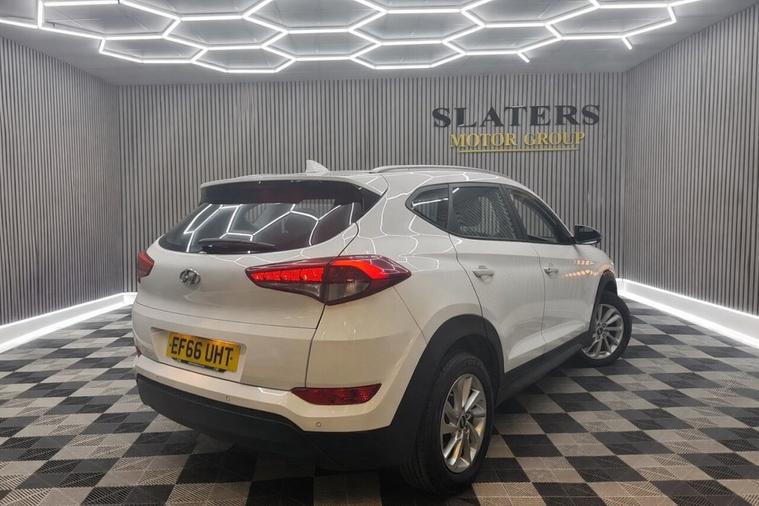 This 2016 Hyundai TUCSON CRDi SE presents an exceptional opportunity with its remarkably low mileage of just 61, 538 miles for its age, a clear vehicle history check, and a fuel economy of 58 mpg. This Euro 6 compliant 1.7L diesel engine ensures efficient performance, complemented by desirable features such as Drive Mode Select for a tailored driving experience, heated front seats for comfort in all weather, and automatic headlights with a dusk sensor. Practicality is enhanced with rear parking sensors and dual zone climate control featuring an ioniser, making every journey more enjoyable. Beyond its impressive specifications, this TUCSON stands out with its low insurance group and low CO2 emissions, indicating it is more economical to own and run compared to many other vehicles in its class. These highlights, combined with the already excellent fuel economy, make this particular TUCSON CRDi SE a smart and cost effective choice for discerning drivers.