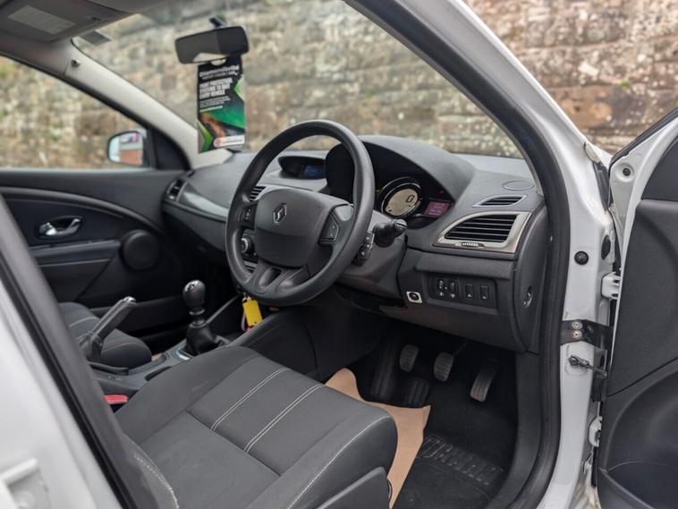 Desirable diesel family hatchback presented in white this is a very economical vehicle being the 1.5 dCi tourer producing 110bhp and returning In excess of 64mpg this is a brilliant vehicle for those who are budget conscious