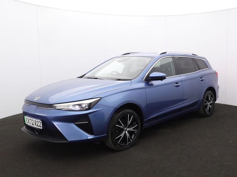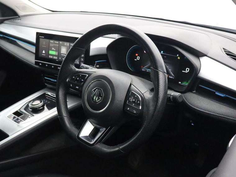 This 2022 MG MG5 Trophy Long Range electric car boasts a full dealership service history and has had only one owner from new, with its MOT valid until October 2026. This electric estate car features a 61 kWh battery offering a maximum range of 235 miles when new. Charging is convenient, with a full charge at home taking approximately 9 hours and 30 minutes using a 7kW charger, while rapid public charging can take the battery from empty to 80% in just 45 minutes. Notable features include Smart Keyless Entry with Push Button Engine Start, rear parking sensors, a 360 degree parking camera, heated front seats, and automatic headlights. The MG5 Trophy Long Range stands out with its impressive electric capabilities and thoughtful features designed for everyday use. The combination of its substantial battery range and efficient charging options makes it a practical choice for both daily commutes and longer journeys. The inclusion of a 360 degree parking camera and rear parking sensors, alongside heated front seats and auto headlights, enhances the driving experience, offering greater convenience and comfort compared to many other vehicles in its class.