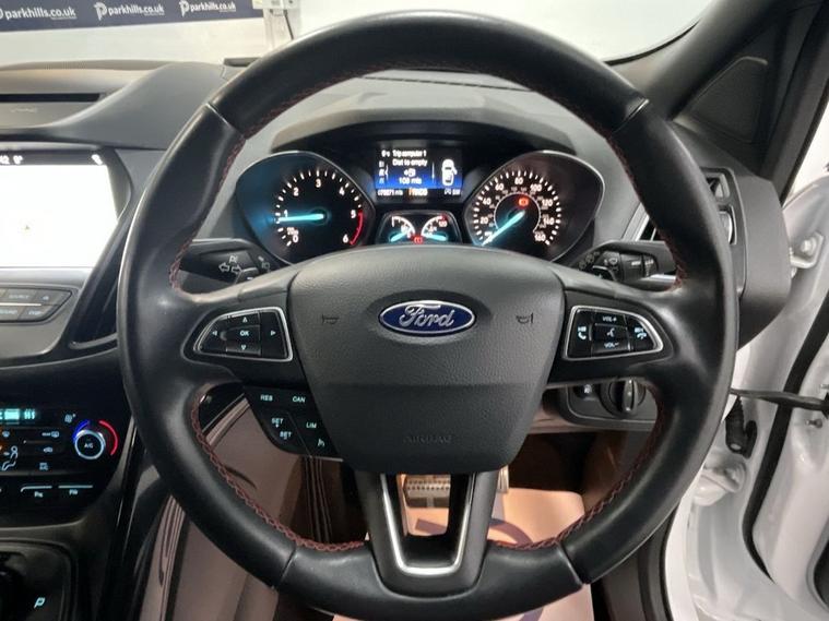 7 STAMP HISTORY, INFOTAINMENT FEATURING HDD SAT NAV, BLUETOOTH PHONE AND MEDIA, AIR CON WITH CLIMATE CONTROL, 18 ALLOYS, ALCANTARA SPORTS HALF LEATHER, PARKING SENSORS, CRUISE CONTROL, MULTI FUNCTION STEERING WHEEL, PRIVACY GLASS, FLEXIBLE MONTHLY PAYMENTS AVAILABLE ON THIS CAR. This stylish SUV finished in Frozen white is equipped with a responsive 1.5L Diesel engine and meets Euro 6 emissions standards. Inside, youll find the convenience of DEATC Dual-Zone Electronic Automatic Temperature Control, ensuring comfort for all occupants, and the Ford DAB Navigation System with Ford SYNC3, which includes Bluetooth connectivity for seamless calls and music streaming. The ST-Line trim also benefits from Automatic Halogen Headlights with LED Daytime Running Lights and Enhanced Active Park Assist, complete with front and rear parking sensors to make manoeuvring effortless. This Ford Kuga stands out with its impressive fuel economy, achieving up to 59 mpg, which is a significant advantage for your running costs. Furthermore, its low insurance group and low CO2 emissions indicate that this vehicle is more economical to own and run compared to many other similar cars on the market. Alcantara half leather sports interior, Bluetooth media streaming, front and rear parking aid, air con, auto headlights, heated front screen, isofix rear seats, electric windows and mirrors, remote central locking alarm/immobilizer, multi-function steering, . THIS CAR IS AA APPROVED AND SOLD WITH A 145 POINT AA INSPECTION CERTIFICATE AND A NATIONWIDE PARTS AND LABOUR WARRANTY, SAME DAY DRIVE AWAY AVAILABLE ON ALL AA INSPECTED CARS. WE OFFER WITH ALL OF OUR CARS A BRONZE, SILVER AND GOLD PROTECTION PACKAGE WHICH INCLUDES A 145 POINT AA INSPECTION, NATIONWIDE ALL MECHANICAL AND ALL ELECTRICAL WARRANTY, AA BREAKDOWN COVER, 12 MONTHS MOT TOP UP VOUCHER, GARDEX SANITIZATION, EXPERIAN CHECK AND COURTESY CAR AVAILABILITY FROM £399. WE ALSO OFFER ALL TYPES OF FINANCE. 3 YEAR PARTS / LABOUR WARRANTY AND SERVICE PLANS AVAILABLE ON ALL AA INSPECTED CARS. .