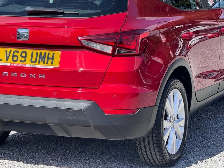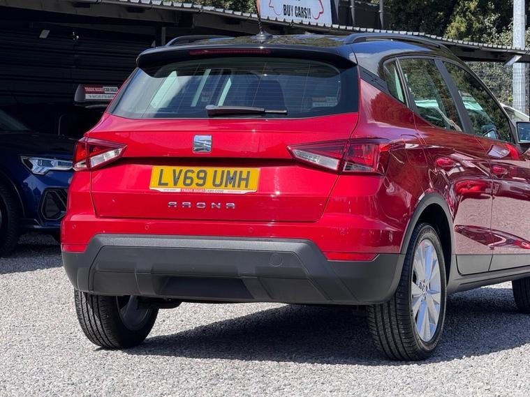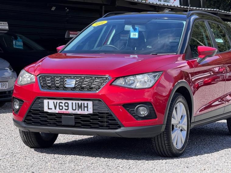 JUST ARRIVED & READY TO DRIVE AWAY! 2019/69 Seat Arona 1.0 TSi GPF SE Technology finished in Desire Red with Black Roof. We are pleased to offer this lovely 5 door petrol SUV-style hatchback. This is the highly desirable and economical 1.0 litre model with a 5 speed manual transmission that offers 94 BHP and over 50 MPG. Insurance group 9/50. It has covered just 41, 528 miles with service history (6 services, 5 @ Seat) and drives as you would expect. Just serviced upon arrival. MOT until 8th April 2027 with no advisories. The car is ready to drive away. We will also include a complimentary 12 month AA breakdown cover. One owner from new. Euro 6 status - ULEZ compliant. A superb low mileage example with the sought-after SE Technology specification. Highlights include; 17 Dynamic alloy wheels, A/C, bluetooth connectivity with BT audio, SmartLink app integration - Apple CarPlay & Android Auto, cruise control, DAB, USB, hill hold control, LED DRLs, rear parking sensors, electric windows x 4, remote central locking x 2 and comfort suspension. The full specification list can be found on our website. Advertised below the AutoTrader RRP. Please let us know if you would like any further information or a detailed video sent via WhatsApp.