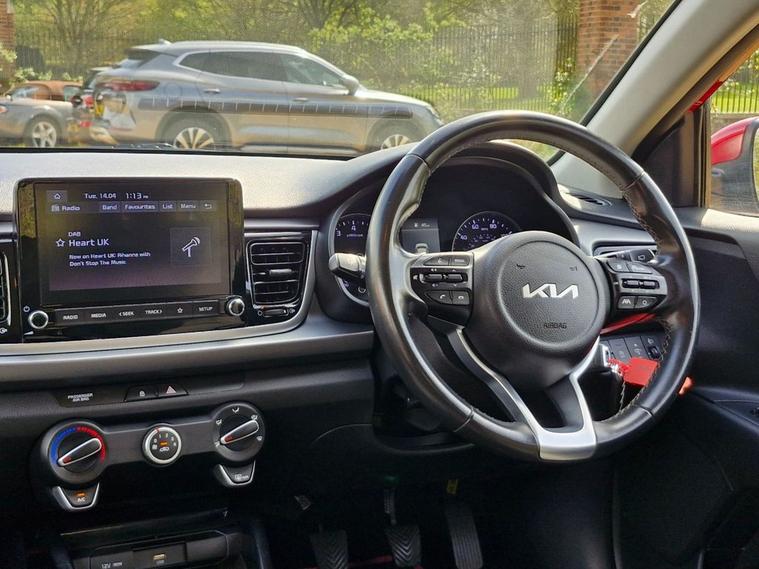 Lovely 2022 22 Kia Rio 1.25 2 5 Door in Blaze Red - Specification includes Reverse Camera with Rear Parking Sensors, Wireless Apple Car Playand Wired Android Auto, DAB Bluetooth Radio, Trip Computer, Cruise Control/Speed Limiter with Adaptive Cruise Control, Electric Folding Mirrors, Electric Windows, Air-Con, Remote Central Locking, Full Service History - EXCELLENT CONDITION - MOT APRIL 2027 -