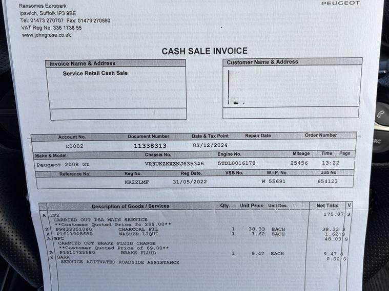 This 2022 Peugeot E-2008 GT is a clear vehicle history example, offering a compelling electric driving experience. As an electric vehicle, it boasts a 50 kWh battery with a maximum range of 214 miles when new. Charging is convenient, with a full charge at home using a 7kW charger taking approximately 7 hours and 30 minutes, and rapid charging to 80% from empty achievable in just 30 minutes at a public station. This GT trim level comes equipped with a suite of advanced features, including a Blind Spot Monitoring System with Blind Spot Assistance, front and rear parking sensors for effortless manoeuvring, and the innovative PEUGEOT 3D i-Cockpit with a configurable 3D head up instrument panel. Youll also find a convenient smartphone charging plate for wireless charging and a Visio Park 1 180 degree colour reversing camera to aid parking. The Peugeot E-2008 GT stands out with its combination of electric efficiency and sophisticated technology. The inclusion of the PEUGEOT 3D i-Cockpit provides a modern and intuitive driving interface, while the comprehensive parking assistance systems, including front and rear sensors and a 180 degree reversing camera, make navigating tight spaces significantly easier. The Blind Spot Monitoring System adds an extra layer of safety, alerting you to vehicles in your blind spots. These features, alongside the impressive electric range and rapid charging capabilities, position this E-2008 GT as a superior choice for those seeking a stylish, practical, and technologically advanced electric car.