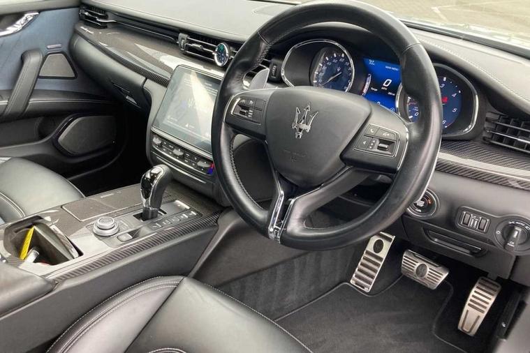 Voice control system, Limited slip differential, Skyhook suspension, Bluetooth audio streaming, Active exhaust sound system, Adaptive front lighting system, Features: Immobiliser, 3 seat rear bench, Tyre pressure monitoring system, NavTrak GPS tracking system, PAS, Ambient interior lighting, Remote keyless Boot entry, On board computer, Electric height/reach adjustable steering column, Electric adjustable/heated/folding door mirrors, Rear armrest, Seatback pockets, Electric rear side window blinds, ABS+EBD+Brake assist, 60/40 split rear bench seat, Cruise control, Front and rear map pockets, Twin rear cupholders, Trip computer, Maserati dash mounted design specific clock, Keyless Start, Service interval indicator, Isofix child seat preparation, Auto dimming rear view mirror, DVD navigation system with 8.4 colour touch screen, radio/CD, aux input, USB socket and SD card reader, Heat and noise insulating glass, Heated windscreen washers, Adaptive front lighting system, 12V socket, Sports button, 8 way electric adjustable front seats + driver memory, Front side airbags, Maserati stability programme, Illuminated air conditioned glovebox, Leather dashboard, Body colour bumpers, Rear seatbelts with pre-tensioners and load limiters, Front and rear parking sensors, Head airbags, Driver/front passenger dual stage smart airbags, Remote central locking, Automatic headlights, Rain sensor, Rear head restraints, Hill hold control, LED daytime running lights, Bluetooth audio streaming, Dual chrome plated stainless steel tailpipes, Perimetric and volumetric anti theft alarm, Front seatbelt pretensioners + load limiters, Front head restraints, Bi-Xenon adaptive headlights with headlight wash, Chrome front grille, Passenger glovebox, Front and rear electric windows, Heated front seats, Chrome line exterior, Front armrest with illuminated, air conditioned storage, Auto dimming door mirrors, Rear view camera, Drivers side glovebox, Easy entry system, Front cupholders x 2, 4 way adjustable lumbar support, Electronic parking brake, ASR + MSR