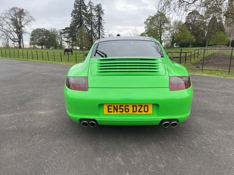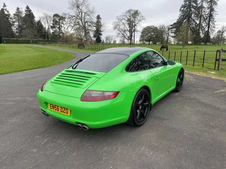 Experience pure driving exhilaration with this stunning 2006 Porsche 911 Carrera S (997), a true icon of performance and design. Powered by a thrilling 3.8-litre flat-six engine producing an impressive 350 bhp, this rear-wheel-drive coupe delivers razor-sharp handling and an unforgettable driving experience, especially when paired with its engaging 6-speed manual gearbox. Finished in timeless style, the 997-generation 911 perfectly balances classic Porsche heritage with modern refinement. Its sculpted bodywork, wide rear stance, and signature curves make it instantly recognisable from any angle. Inside, the driver-focused cabin offers a premium feel with high-quality materials throughout, supportive sports seats, and intuitive controls. Every journey feels special, whether youre carving through country roads or cruising on the motorway. With 277 g/km CO? emissions, this performance machine remains a raw and authentic sports car, offering pure connection between driver and roadsomething increasingly rare in todays market. A superb opportunity to own a highly desirable modern classic, this 911 Carrera S delivers thrilling performance, everyday usability, and timeless appeal in one exceptional package. WE CAN REMOVE WRAP BACK TO ORIGINAL SILVER IF PREFERRED!