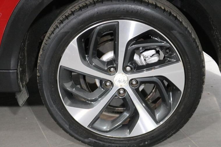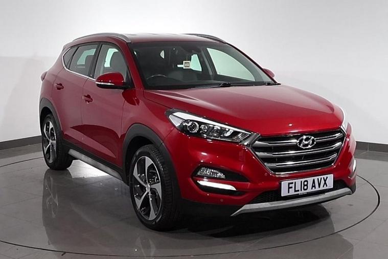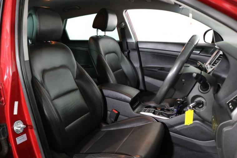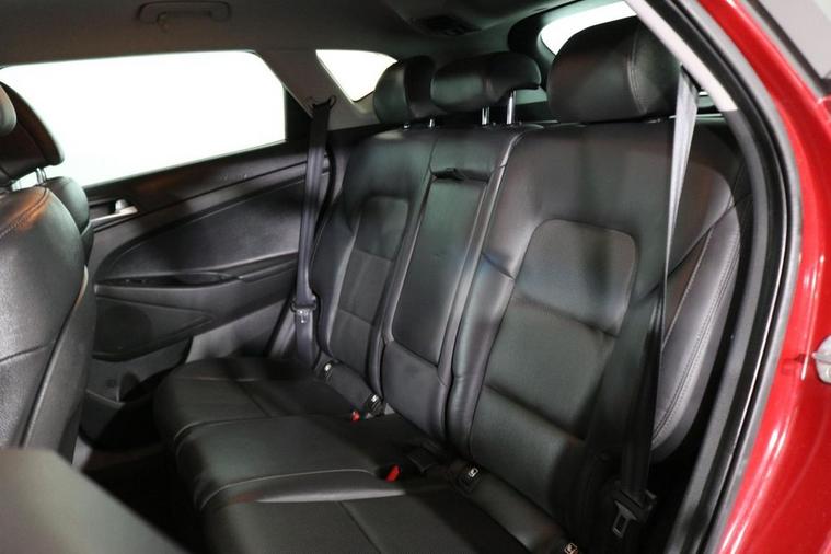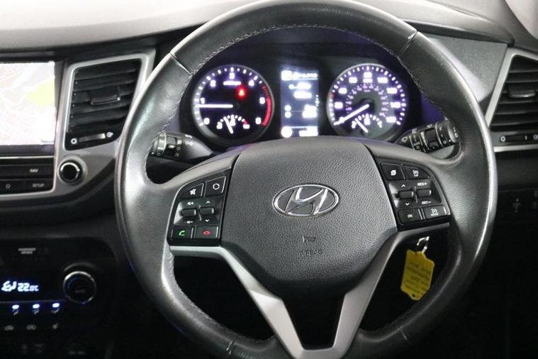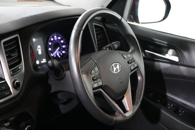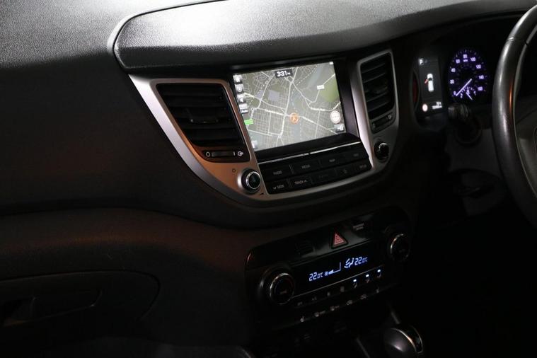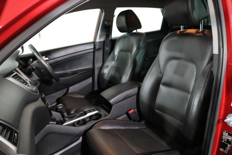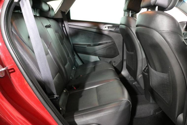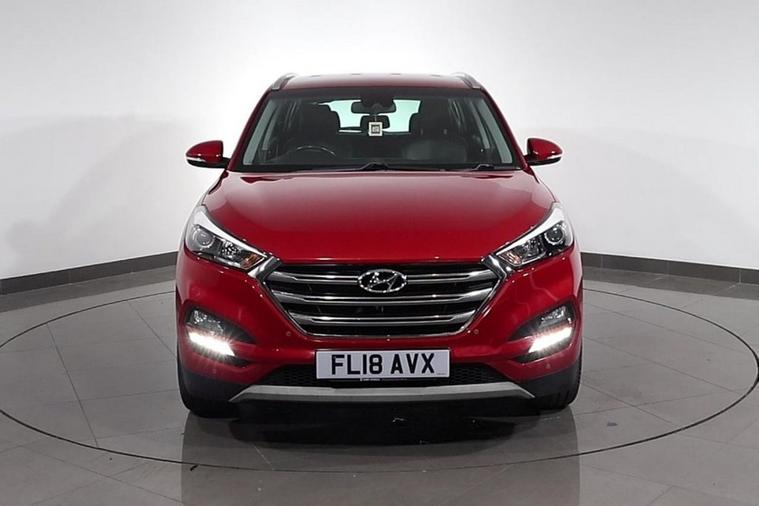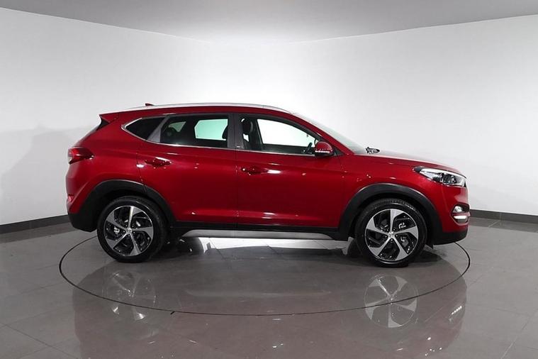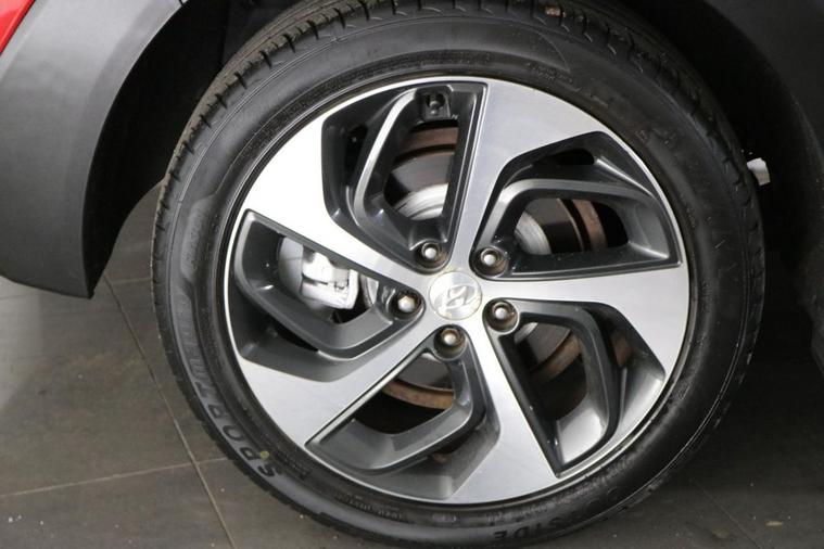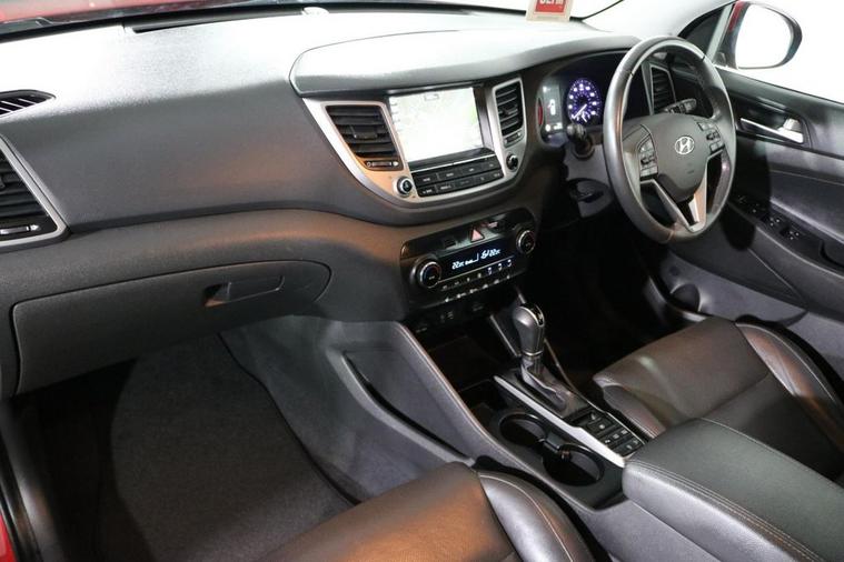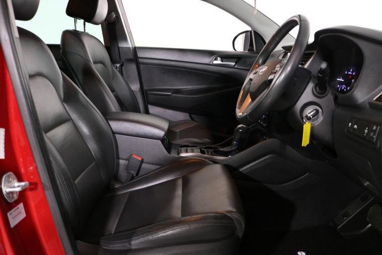 This desirable Automatic Hyundai Tucson Sport finished in Fiery Red looks fantastic complemented by 19 inch Alloy Wheels, LED Running Lights and Rear Privacy Glass. Find your way with integrated SATELLITE NAVIGATION with 8 inch TOUCHSCREEN Display. Park in ease with REVERSE CAMERA and FRONT & REAR PARKING SENSORS. Sit in luxury with BLACK LEATHER Upholstery with HEATED FRONT & REAR SEATS. Keep connected with BLUETOOTH Phone System. Listen to your music through DAB Digital Radio. Comfortable to drive with Dual-Zone CLIMATE CONTROLLED AIR CONDITIONING and CRUISE CONTROL with Speed Limiting Function. Well equipped with Power-Fold Door Mirrors, Auto Headlights and Rain Sensing Wipers. Safe to journey with Brake Assist and Lane Departure Warning. Also fitted with ISOFIX seats, Multifunctional Steering Wheel, Immobiliser, Alarm and Remote Door Locking with 2 x keys. Buy in confidence with SERVICE HISTORY with 6 x Documented Services.