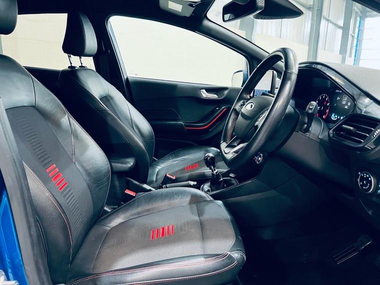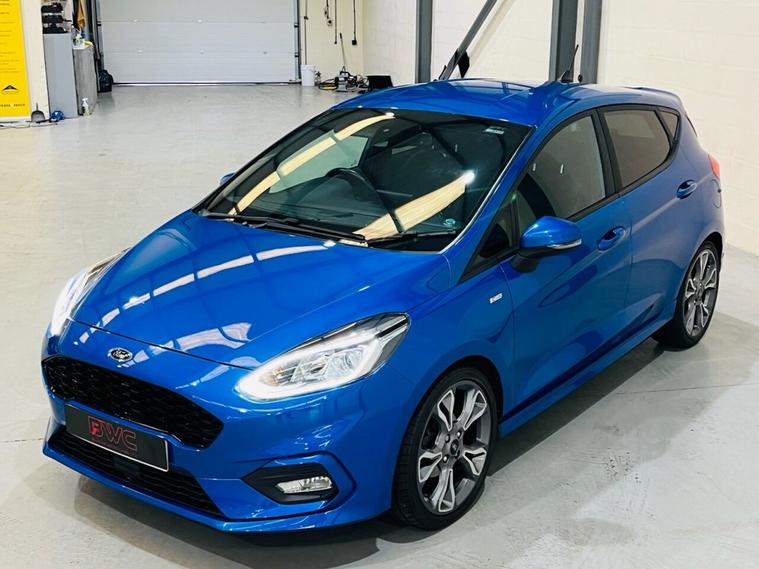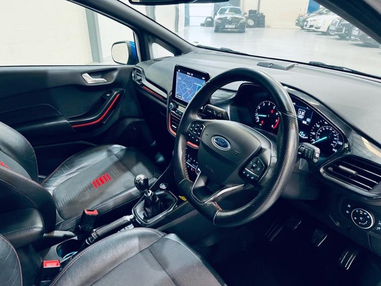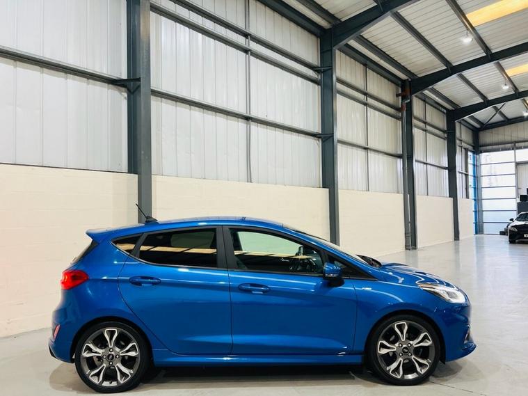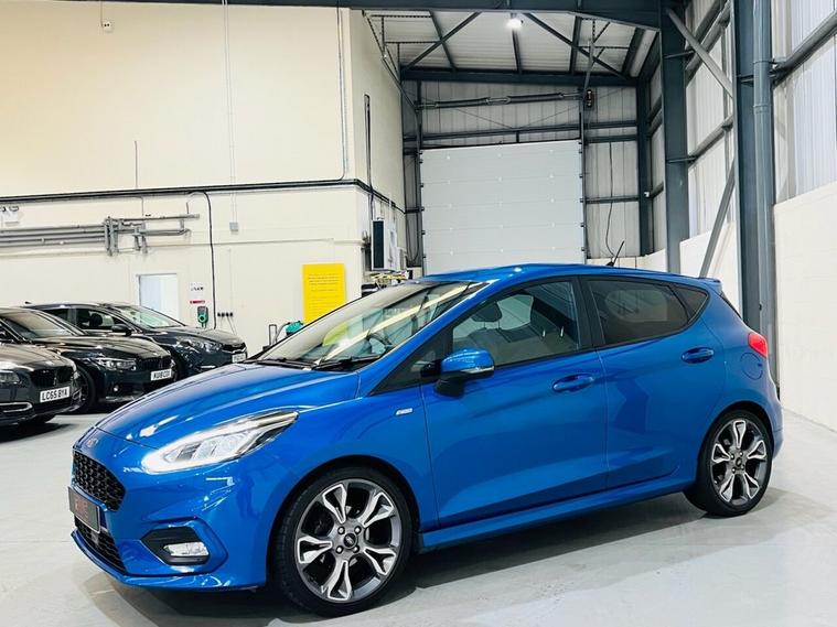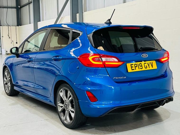 Ford Fiesta 1.0T EcoBoost ST-Line X Hatchback EP19 GYV | 25, 000 miles | Desert Island Blue This Ford Fiesta ST-Line X combines sporty styling with lively petrol performance and a high level of specification. Powered by the punchy 1.0 EcoBoost engine producing 140 PS and paired with a manual gearbox, it delivers an engaging drive with excellent fuel efficiency Finished in eye-catching Desert Island Blue, this example stands out with its sporty ST-Line styling and upgraded 18-inch alloy wheels, giving it a sharp and dynamic road presence. With just 25, 000 miles, this is a low mileage example that presents exceptionally well Inside, the cabin is well-equipped and modern, featuring a premium B&O sound system for excellent audio quality, along with a rear view camera and KeyFree system for added convenience Key Features ST-Line X Specification 1.0 EcoBoost Petrol Engine (140 PS) Manual Gearbox 18 Inch Alloy Wheels B&O Premium Audio System KeyFree Entry & Start System Rear View Camera Bluetooth Media Connectivity Additional Information Euro 6 (s/s) ULEZ Compliant Low Mileage 25, 000 Miles Sporty & Well-Specified Hatchback A superbly presented Fiesta ST-Line X, offering low mileage, strong performance, and great specification in a standout colour.