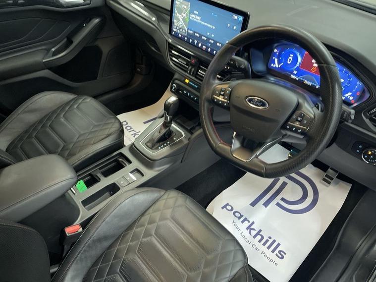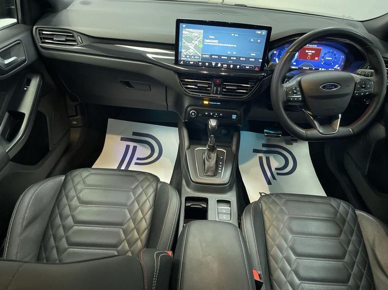 MAIN DEALER SEVICE HISTORY, FULL VIGNALE LEATHER INTERIOR, DIGITAL COCKPIT, FORD OVERSIZE TOUCHSCREEN INFOTAINMENT SYSTEM FEATURING HDD SAT NAV, DAB RADIO AND BLUETOOTH PHONE AND MEDIA ENABLING SEAMLESS MUSIC STREAMING, AIR CON, 18 GRAPHITE ALLOYS, DAYTIME RUNNING LIGHTS, FRONT AND REAR PARKING SENSORS, PRIVACY GLASS, MONTHLY PAYMENTS AVAILABLE ON THIS CAR. This 2023 Ford Focus T ST-Line X finished in Magnetic grey metallic is a prime example of modern driving technology. Powered by an efficient 1.0L Petrol Hybrid engine and meeting Euro 6 emissions standards, this vehicle offers a blend of performance and economy. It comes equipped with advanced features such as automatic on-off headlights with full fixed LED illumination and LED daytime running lights, ensuring optimal visibility. Convenience is further enhanced by the Ford Key Free System, allowing for keyless entry and start, and a wireless charging pad for your mobile devices. Inside, youll find the DEATC Dual-Zone Electronic Automatic Temperature Control, providing personalised comfort for both driver and passengers. The ST-Line X trim level signifies a higher standard of specification, indicating that this Ford Focus offers a superior experience compared to other models. The inclusion of features like the advanced LED lighting system and the keyless entry and start system demonstrate a commitment to both safety and ease of use. The wireless charging capability and dual-zone climate control further elevate the comfort and convenience, making every journey more enjoyable. This Focus is designed to provide a refined and practical driving experience for everyday use. Heated screen, start-stop, electric windows and mirrors, remote central locking alarm and immobilizer, centre arm rest, isofix rear seats, THIS CAR IS AA APPROVED AND SOLD WITH A 145 POINT AA INSPECTION CERTIFICATE AND A NATIONWIDE PARTS AND LABOUR WARRANTY, SAME DAY DRIVE AWAY AVAILABLE ON ALL AA INSPECTED CARS. WE OFFER WITH ALL OF OUR CARS A BRONZE, SILVER AND GOLD PROTECTION PACKAGE WHICH INCLUDES A 145 POINT AA INSPECTION, NATIONWIDE ALL MECHANICAL AND ALL ELECTRICAL WARRANTY, AA BREAKDOWN COVER, 12 MONTHS MOT TOP UP VOUCHER, GARDEX SANITIZATION, EXPERIAN CHECK AND COURTESY CAR AVAILABILITY FROM £399(HYBRID). WE ALSO OFFER ALL TYPES OF FINANCE. 3 YEAR PARTS / LABOUR WARRANTY AND SERVICE PLANS AVAILABLE ON ALL AA INSPECTED CARS.