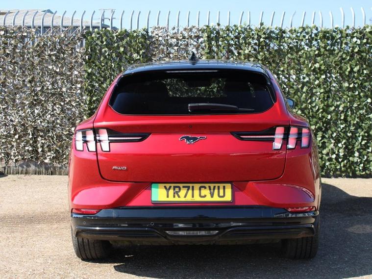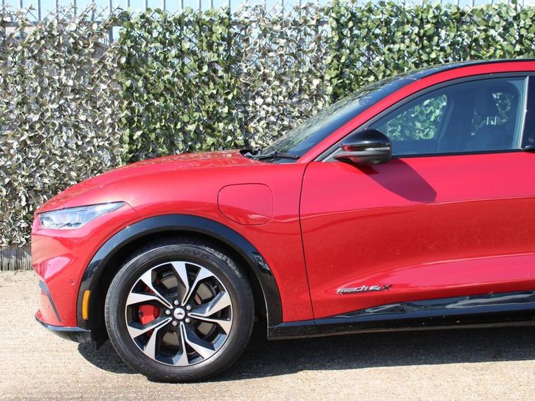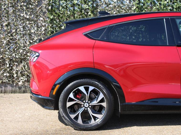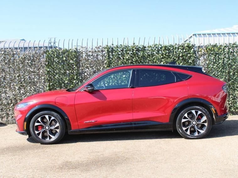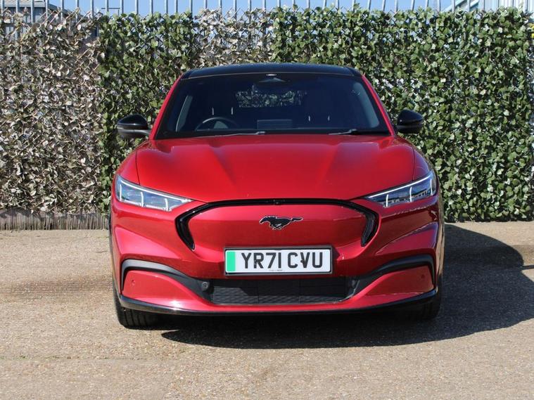 This 2021 Ford Mustang Mach-E Extended Range offers an impressive electric driving experience with its Four Wheel Drive system and a substantial 99 kWh battery, providing a maximum range of 335 miles when new. This electric SUV also features convenient E-Latch keyless entry with B-pillar keypad access, a wireless device charging pad, and a premium 10 speaker B+O sound system with a dashboard sound bar. For added safety and ease, it includes BLIS blind spot information system with cross traffic alert, along with front and rear parking sensors that incorporate parking assistance. Experience exhilarating performance with the Mustang Mach-E, capable of accelerating from 0-60mph in just 5.8 seconds, demonstrating its superior capability compared to other vehicles in its class. Recharging is efficient, with a full charge at home taking approximately 14 hours and 36 minutes using a 7kW charger, while rapid public charging can take the battery from empty to 80% in as little as 51 minutes. These highlights underscore the Mustang Mach-Es advanced technology and its position as a leading electric vehicle.