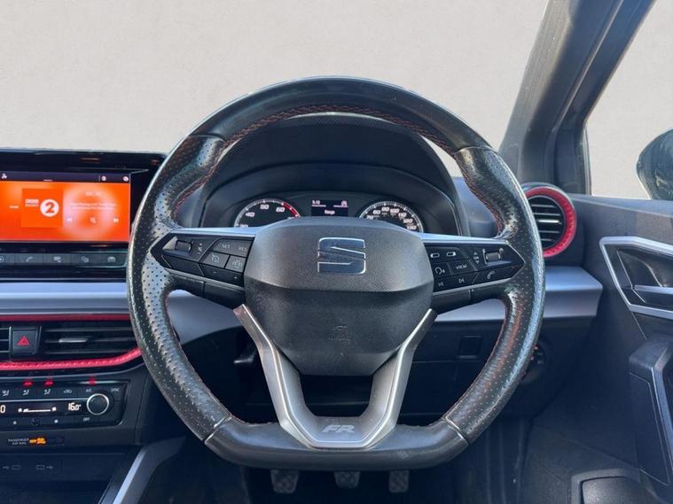The SEAT Arona 1.0 TSI FR Edition SUV 5dr Petrol Manual Euro 6 (s/s) (110 ps) is a sporty compact SUV that combines FR styling, everyday practicality, and efficient turbocharged performance. It stands out with 18-inch machined alloy wheels in black and grey, a contrast roof, chrome roof rails, rear spoiler, twin exhaust finishers, and dark tinted rear windows, giving it a bold and athletic look. Inside, the FR Edition features a driver-focused cabin with a flat-bottom leather steering wheel with red stitching and FR detailing, sports styling elements, ambient interior lighting, and comfortable front seats with height adjustment. The 8.25-inch touchscreen with Full Link smartphone integration provides Apple CarPlay and Android Auto, while features like wireless phone charging, Bluetooth connectivity, and dual-zone climate control add everyday convenience. Technology and safety are well covered, including LED headlights and taillights, cruise control with speed limiter, lane keeping assist, tiredness recognition, rear parking sensors, hill hold control, ESC stability control, multiple airbags, ISOFIX mounting points, and a tyre pressure monitoring system, ensuring confidence and security on every journey. For added peace of mind, if the MOT is under six months, well ensure a fresh MOT is completed before sale. The vehicle also comes with a standard three-month back-to-base warranty, with the option to extend it to a nationwide warranty for added reassurance. Nationwide delivery is also available. Finance Available Special 9.9% APR Offer We offer in-house finance with zero deposit options and flexible monthly payments. Apply in minutes and drive away the same day! For more details or to arrange a viewing, contact 02030183551 or email enquiries dealer's website