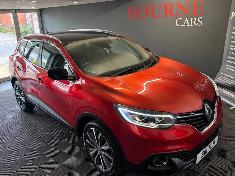 Renault Kadjar Signiture Nav with Extensive maintenance history & a new MOT. Services were carried out at: 3474mls, 9594mls, 16115mls, 23943mls, 30554mls, 37112mls, 47937mls, 58150mls, 67425mls. 2 Former Keepers. Road Tax: £35/year, Average Fuel Consumption: 62.8MPG, Insurance Group: 18. 2 Keys, This vehicle is fitted with Satellite Navigation, Parking Camera, Panoramic Roof, Parking Sensors, Blind spot detection, Bose Sound, Air Conditioning, Cruise Control, Bluetooth Phone Connection, USB&AUX Port.