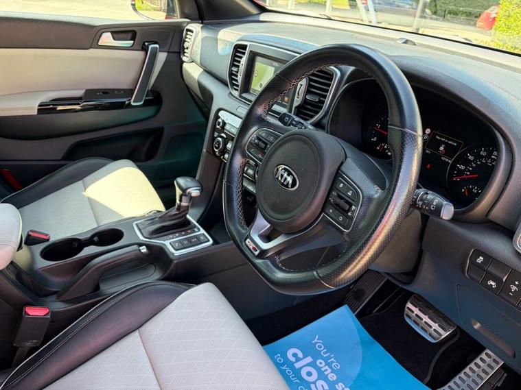 We are delighted to offer this fabulous Kia Sportage to sale. This is a GT Line model and benefits from All Wheel Drive. We hold a detailed service record with services listed at 22, 46, 69, 79, 89k we shall apply a fresh service and fresh 12 month MOT. All of our vehicles come with a 6 month nationwide warranty and a 12 month AA breakdown cover. 2 keys with this example and all vehicles have a 34 point health check. Features included on this GT Line, All Wheel Drive, Navigation, Cruise, USB /AUX, dab radio, drive mode, lane departure assist, reverse camera, front and rear sensors, two tone luxury leather seats, paddle shift gears and hard shift, unmarked alloys, folding mirrors, great tyres all round. We are here to help you, open Monday - Saturday 8am - 6pm with viewings by appointment . Call 01625320973 , we are here to help you 01625320973. ** Nationwide delivery options are available ** 01625320973