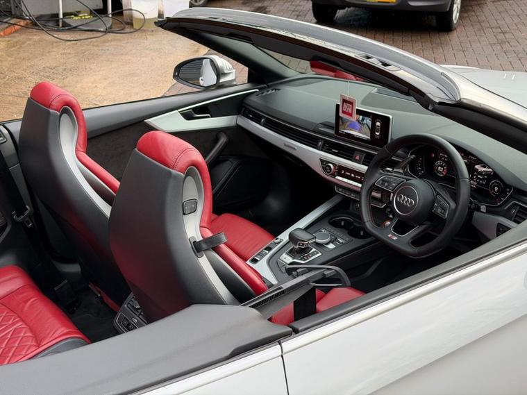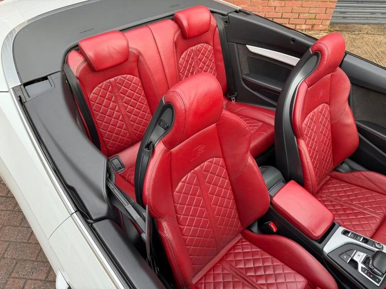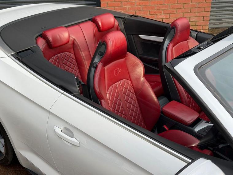 This stunning Audi S5 Cabriolet 3.0 TFSI V6 quattro is a standout example, combining performance, luxury and open-top driving in one striking package. With just 1 previous keeper, this car has been well cared for and presents in excellent condition throughout. Powered by Audis refined 3.0-litre V6 TFSI petrol engine, paired with a smooth Tiptronic automatic gearbox and the renowned quattro all-wheel-drive system, the S5 delivers effortless performance with exceptional grip and composure in all conditions. Finished with a striking red convertible roof and matching red leather interior, this example offers a rare and eye-catching specification that truly sets it apart from the rest. Key Features Include: Red convertible roof Red leather interior Upgraded Audison sound system with subwoofer and amplifier Flat-bottom multifunction steering wheel Quattro all-wheel drive Tiptronic automatic gearbox S5 performance styling and detailing Heated front seats Satellite navigation & infotainment system Front & rear parking sensors LED headlights Dual-zone climate control The upgraded Audison sound system is a standout feature, offering significantly enhanced audio quality over standard, creating a premium in-car experience whether the roof is up or down. This S5 Cabriolet delivers the perfect blend of performance, luxury and style, offering a refined yet exhilarating open-top driving experience. A rare opportunity to acquire a well-specified, well-maintained example with a distinctive colour combination. Torza Cars Buy with Confidence Purchasing from Torza Cars provides complete peace of mind. We are FCA-regulated, AA-approved and 5-star reviewed, trusted for our professionalism and carefully selected vehicles. Every car is supplied with a 3-month comprehensive warranty (extendable up to 36 months) and 12 months AA breakdown cover as standard, ensuring your ownership experience is as enjoyable as it is reassuring.