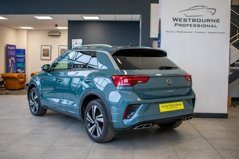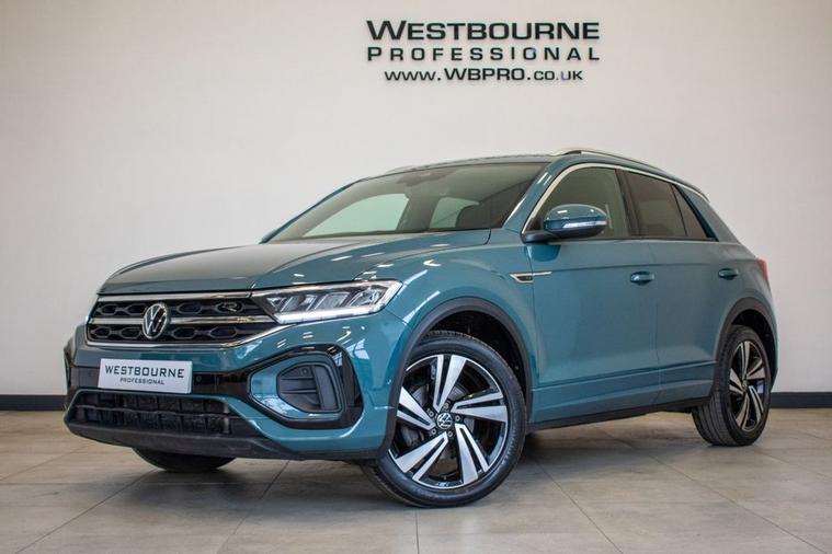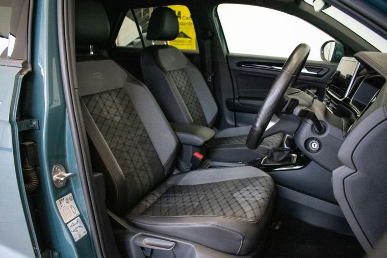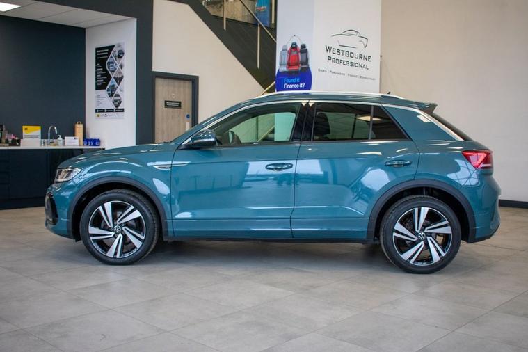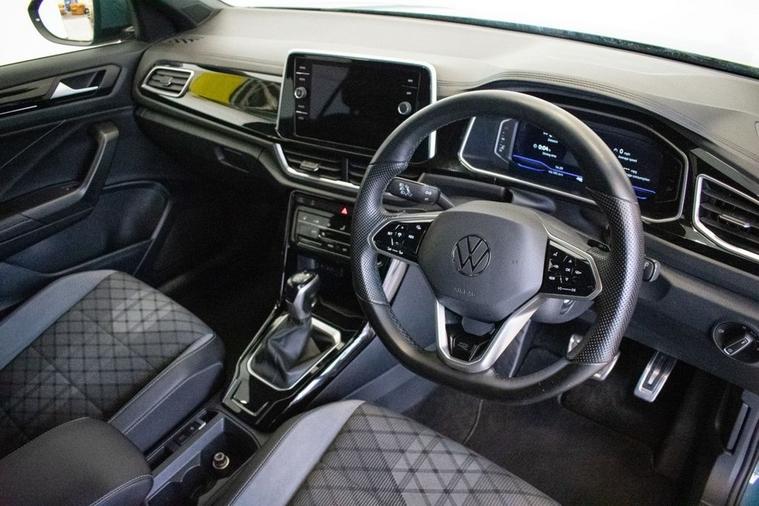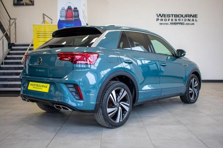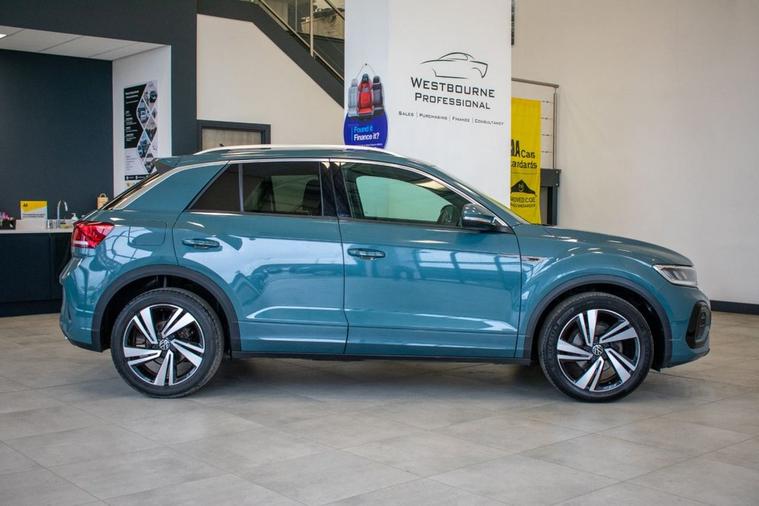 2022 72 Volkswagen T-Roc 1.5 TSI R-Line DSG, finished in Petrol Blue Metallic. Equipped with fantastic specification including 18-inch Nevada Alloy Wheels, Discover Media Satellite Navigation, Digital Dashboard, App Connect for Apple CarPlay / Android Auto, Heated Front Seats, Adaptive Cruise Control, Front & Rear Parking Sensors, Park Assist, Leather Multifunction Steering Wheel with Paddle Shift, Heated Power Folding Mirrors, Automatic Dual Zone Climate Control, DAB Radio, Bluetooth Telephone & Audio Connectivity, Automatic Headlights, Lane Assist and more.