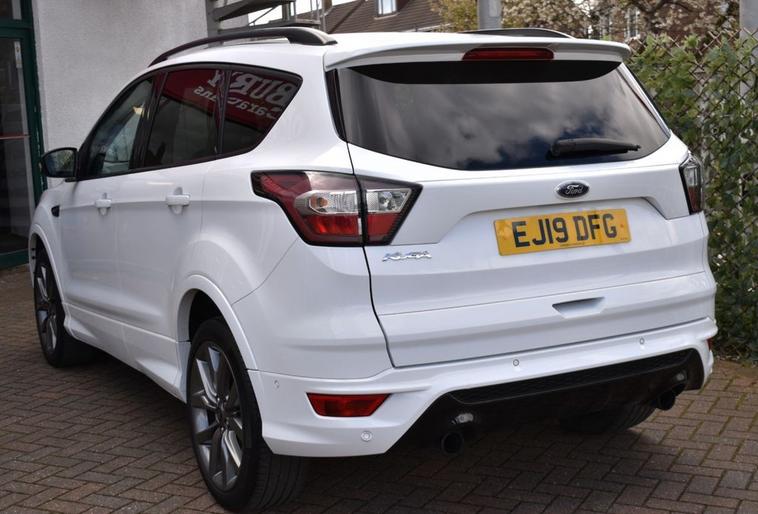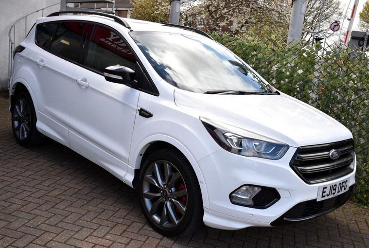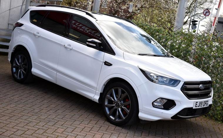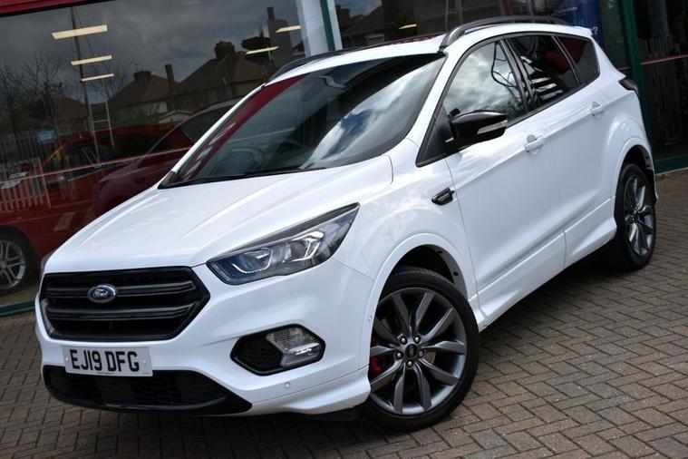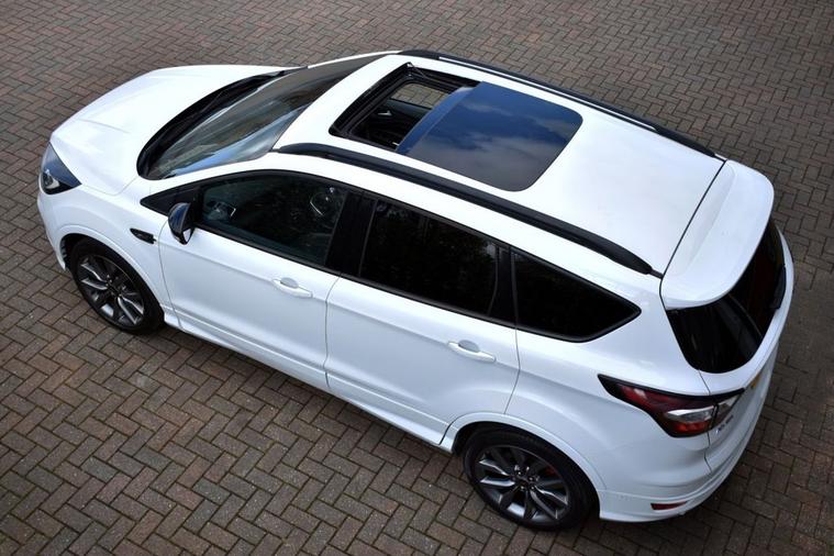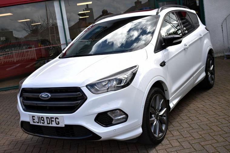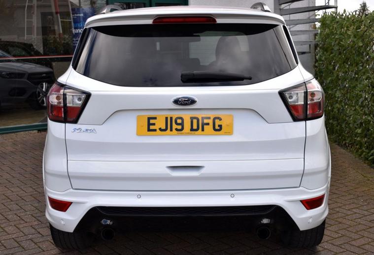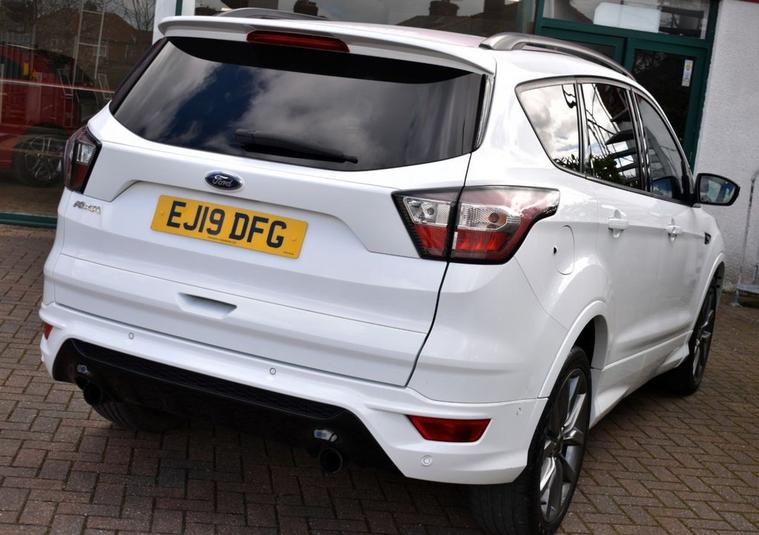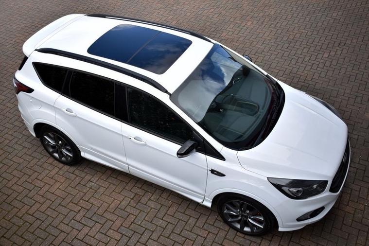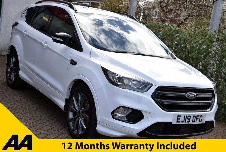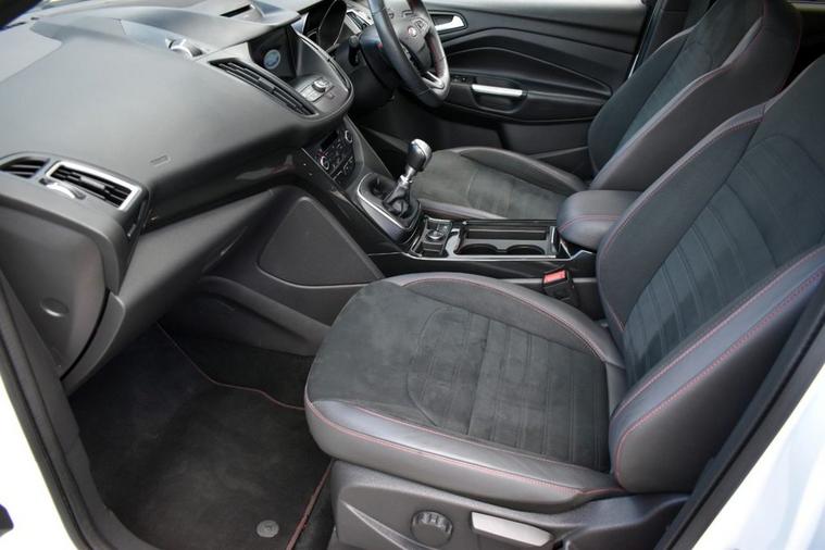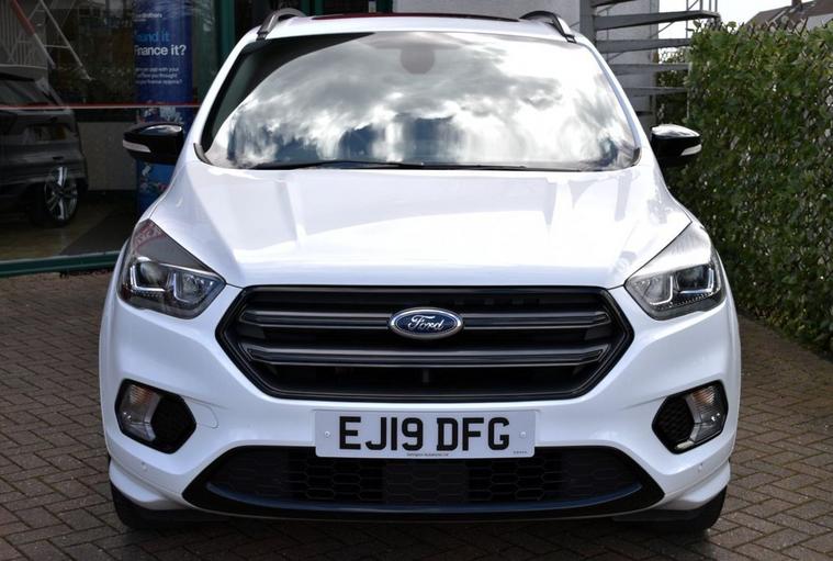 Frozen White with Black leather/alcantara interior and Red contrast stitching. Specification: Panoramic tilt/slide glass sunroof with electric sun shade, Ford SYNC 3 navigation, Apple CarPlay/Android Auto, front and rear park pilot, electric folding door mirrors with blind-spot function, multi-function steering wheel with cruise control/limiter, privacy glass, 19 alloy wheels and Red brake calipers, automatic LED daytime running lights with xenon headlights, front fog lights, DAB radio CD, AUX/USB input, smartphone interface with wireless audio streaming, dual-zone climate control, heated windscreen, front centre armrest, 60/40 split-folding rear seats, space-saver spare wheel and more. Complete with comprehensive service history and both serviced and MOTd at point of sale in our on-site service centre. Original handbook pack and two remote keys.