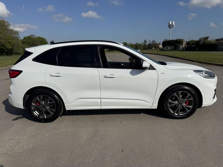 This 2021 Ford Kuga ST Line presents a clear vehicle history, offering peace of mind for its next owner. This stylish SUV is equipped with a responsive 1.5L Diesel engine, meeting Euro 6 emission standards. Inside, youll find convenient features such as paddle shift for manual gear control, wireless charging for your devices, and the Ford Key Free System for effortless keyless entry and start. The automatic on-off headlights and dual zone electronic automatic temperature control ensure comfort and convenience on every journey. The Kuga ST Line stands out with its impressive fuel economy, achieving up to 52 mpg, which indicates it is more economical than many similar vehicles. Furthermore, its low insurance group and low CO2 emissions highlight its cost effectiveness and environmental consideration compared to other cars in its class. This combination of efficiency, advanced features, and strong provenance makes this Ford Kuga a compelling choice.