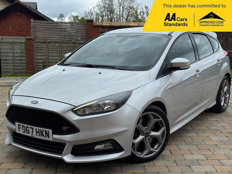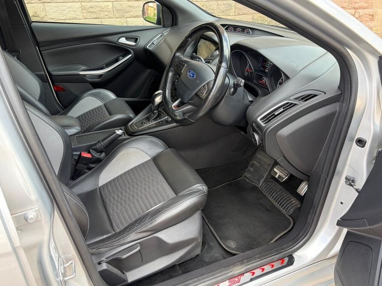 We are pleased to present this stunning Ford Focus 2.0 TDCi ST-2 Automatic in silver. This vehicle is in immaculate condition throughout and has been very well cared for by its previous owner. It comes with a full Ford service history, including the cambelt and water pump replaced in 2025, offering excellent peace of mind. The car has covered just 65, 000 miles. Also, the car has front and rear dash cams fitted. Key Features: Satellite navigation, Parking sensors, Climate control, Multifunction steering wheel, Cruise control with speed limiter, DAB radio, USB & AUX connectivity, Electric windows and mirrors and key ignition. This is an all-round excellent example, combining performance, comfort, and practicality. The car also benefits from a long MOT and comes with two keys. This vehicle also comes with a complementary 6 month warranty and 12 months AA cover.
